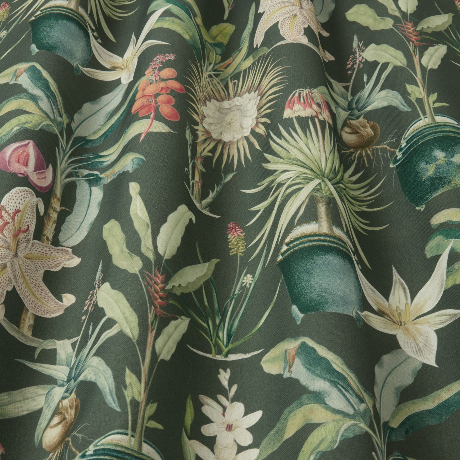 The fabric design is shown flat on the above image. Patterned fabric will look different when made into curtains as it will hang in rippled folds.
