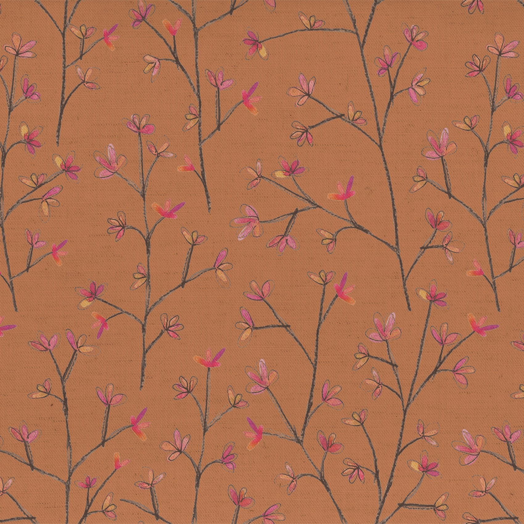 Ophelia is a gentle and elegant floral design that is whimsical and abstract in feel. Made up of vibrant petals and intertwining vines, with plain linen or playfully bright complementary backgrounds, this simple yet gracefully effective design makes a stunning soft-furnishings fabric.