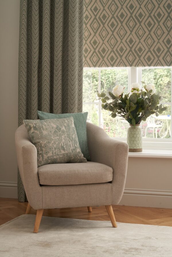The fabric design is shown flat on the above image. Patterned fabric will look different when made into curtains as it will hang in rippled folds.