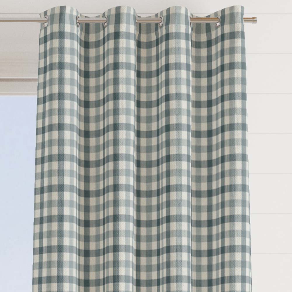 The fabric design is shown flat on the above image. Patterned fabric will look different when made into curtains as it will hang in rippled folds.