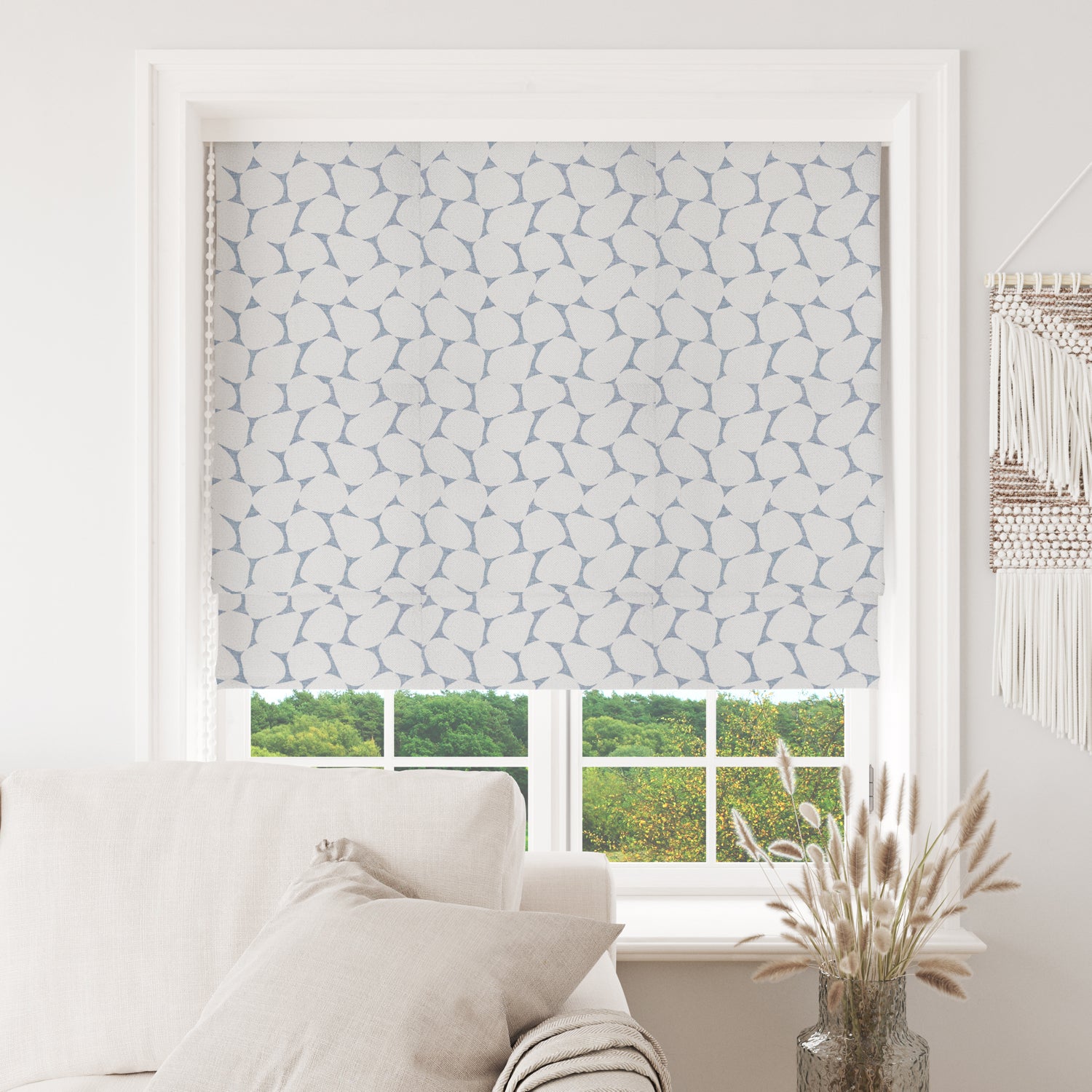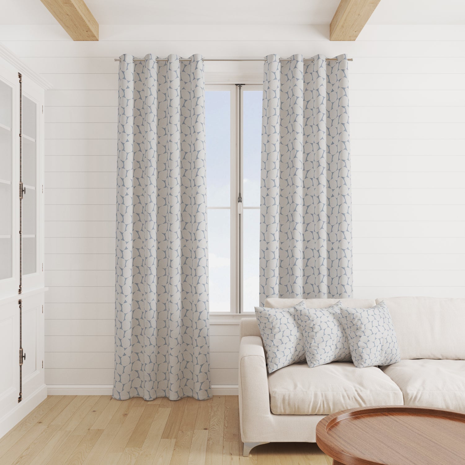 The fabric design is shown flat on the above image. Patterned fabric will look different when made into curtains as it will hang in rippled folds.