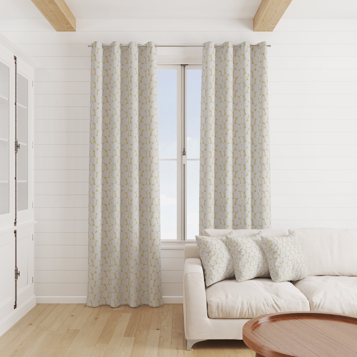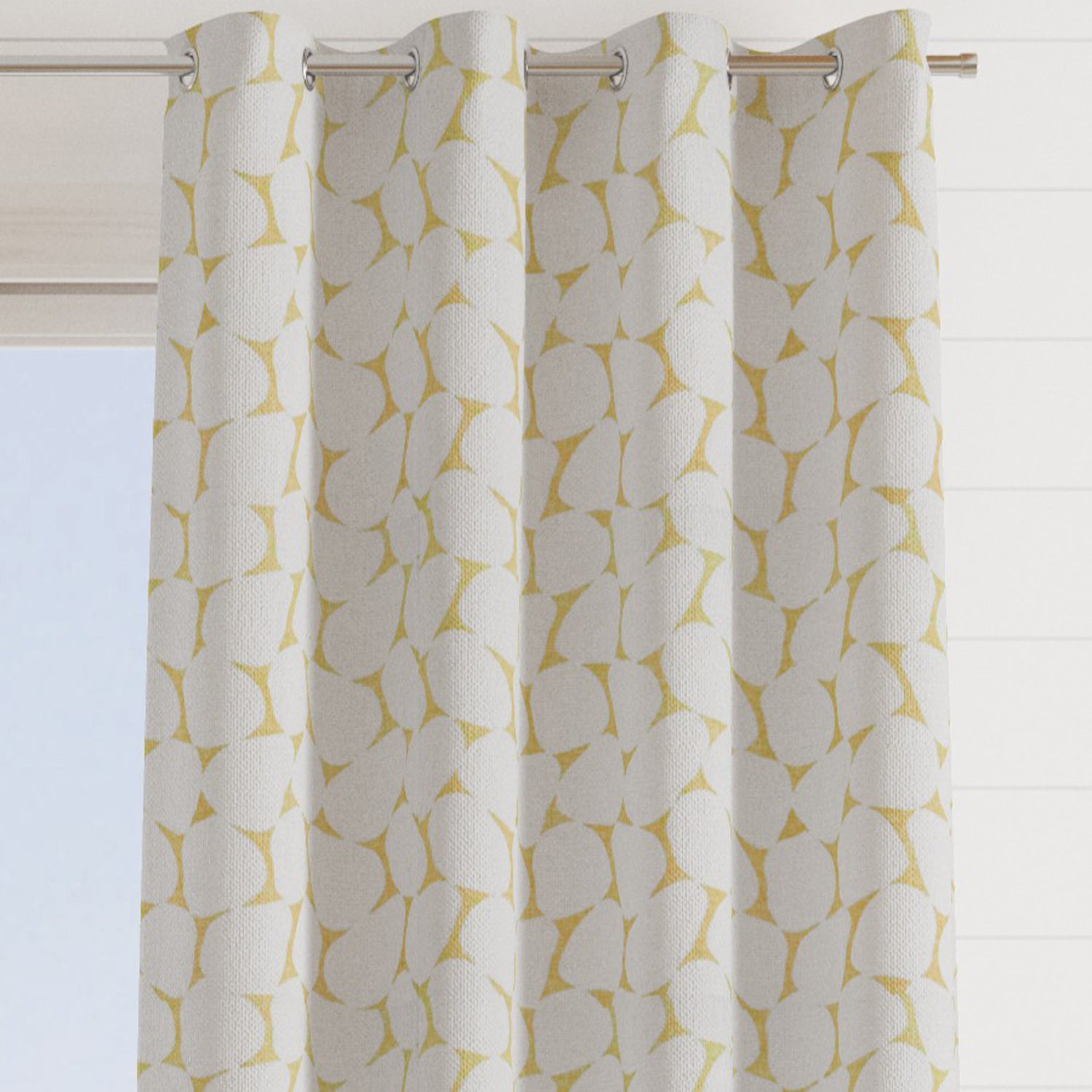 The fabric design is shown flat on the above image. Patterned fabric will look different when made into curtains as it will hang in rippled folds.