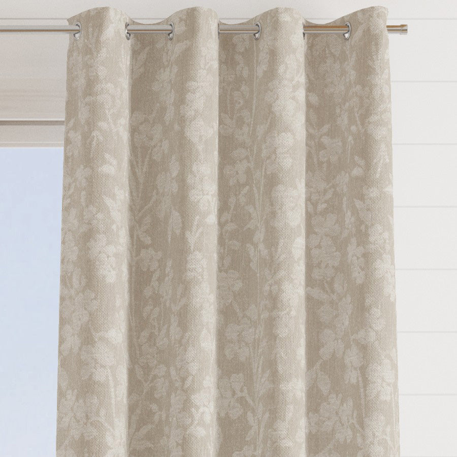 The fabric design is shown flat on the above image. Patterned fabric will look different when made into curtains as it will hang in rippled folds.