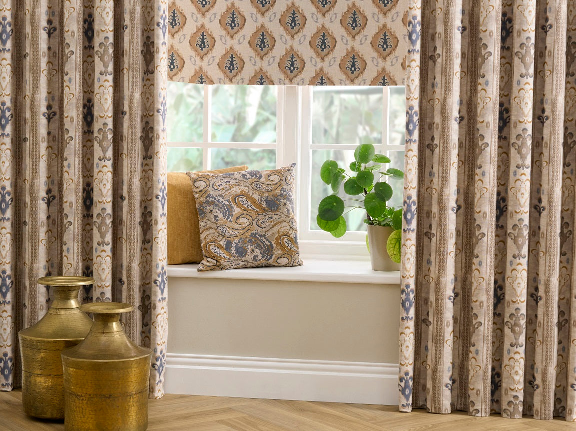 Persian is a collection of rich, intricate designs taking inspiration from kilim patterns, printed on 100% natural fabric. They are printed on 20% linen, 80% viscose and are suitable for drapes, blinds, upholstery and accessories.