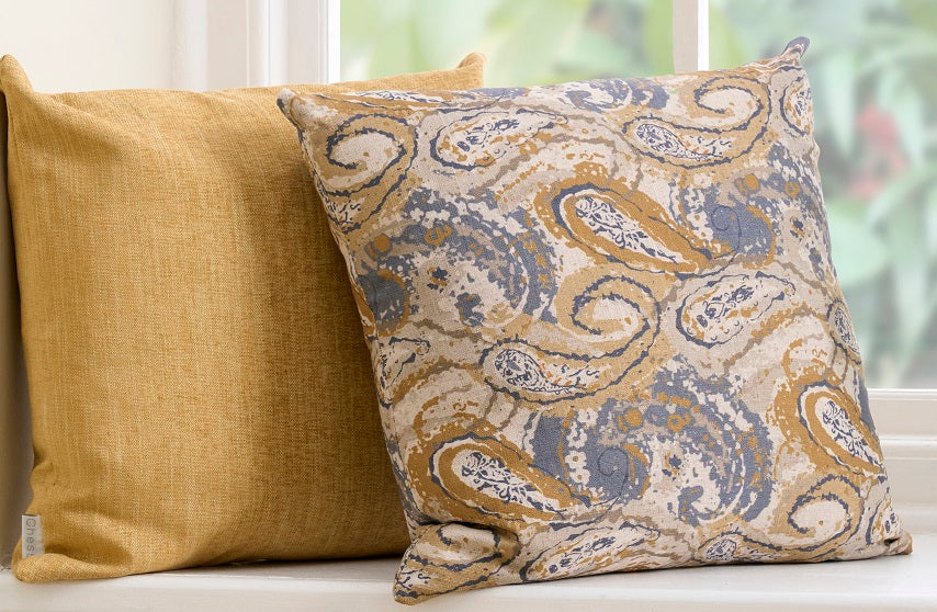Nima is a paisley style wave design. It is printed on a linen viscose fabric. The Earth colourway features green, brown and pink. Nima is available in four colourways and is part of the Persian Collection.