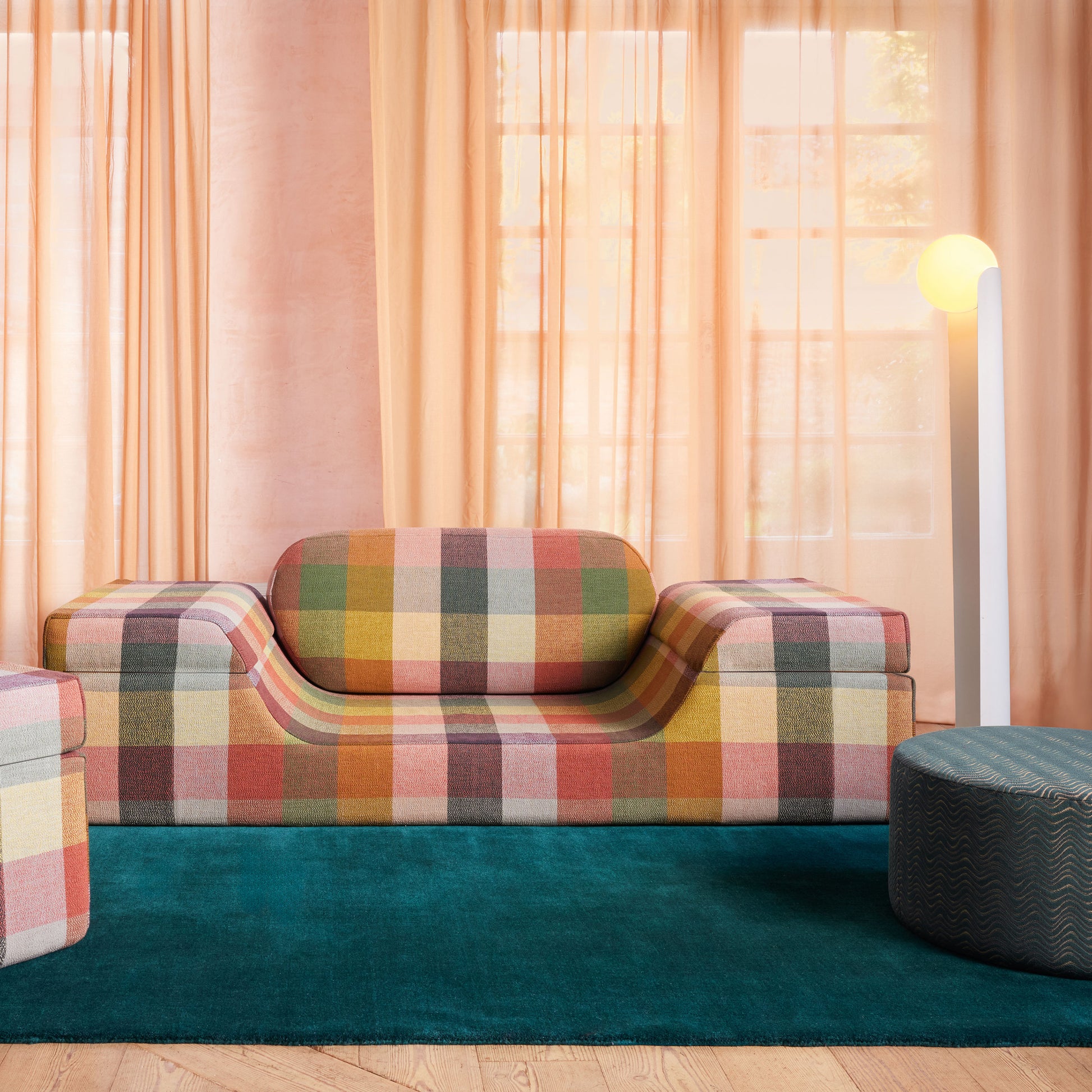 Like a deck of cards, this collection of responsibly sourced decorative textiles has a young royal vibe, conjuring thoughts of grand estates that are home to eccentric interiors. Evoking nostalgia with their playful patterns, graphic geometrics and organic shapes emerge as crisp cut and uncut velvets, soft chenilles and blankety weaves. With it’s vintage vibe, the collection celebrates the charm of bygone trends while presenting something new and exciting. Combining the modernisation of recycled and responsibly sourced yarns with classic inspiration is the essence of innovation. A colour palette to match; regal, jewel-like shades and retro inspired tones are captivating and playfully sophisticated.