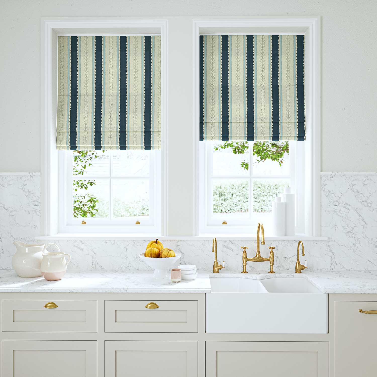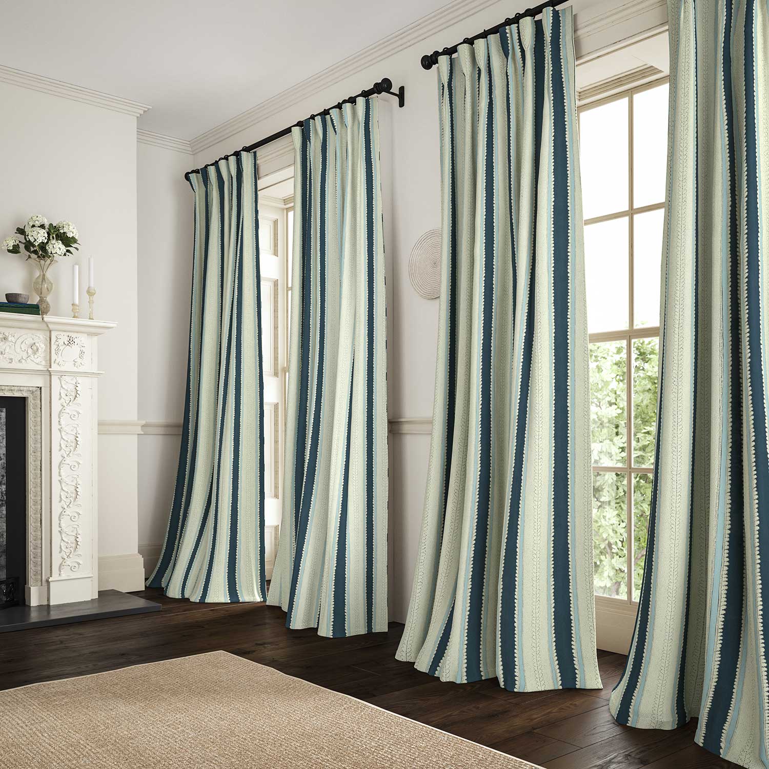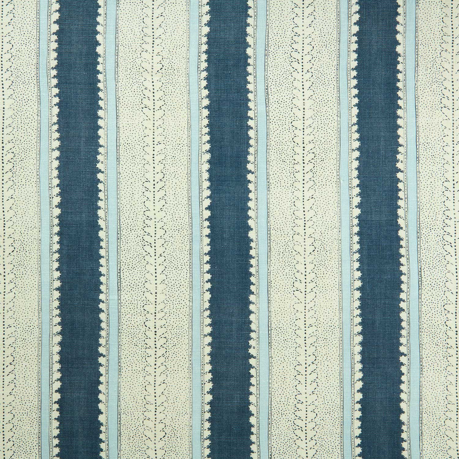 Drawing inspiration from an original French archive sample, this stripe is an artisan mix of bands of colour and delicate pattern. Printed on pure linen, there are 19 colourways available, ranging from maroon and tawny hues to the ever-popular blues and greens. The new stripe collection’s appeal lies in its versatility; whether it takes centre stage as a hero design or plays a supporting role, it is undeniably beautiful.