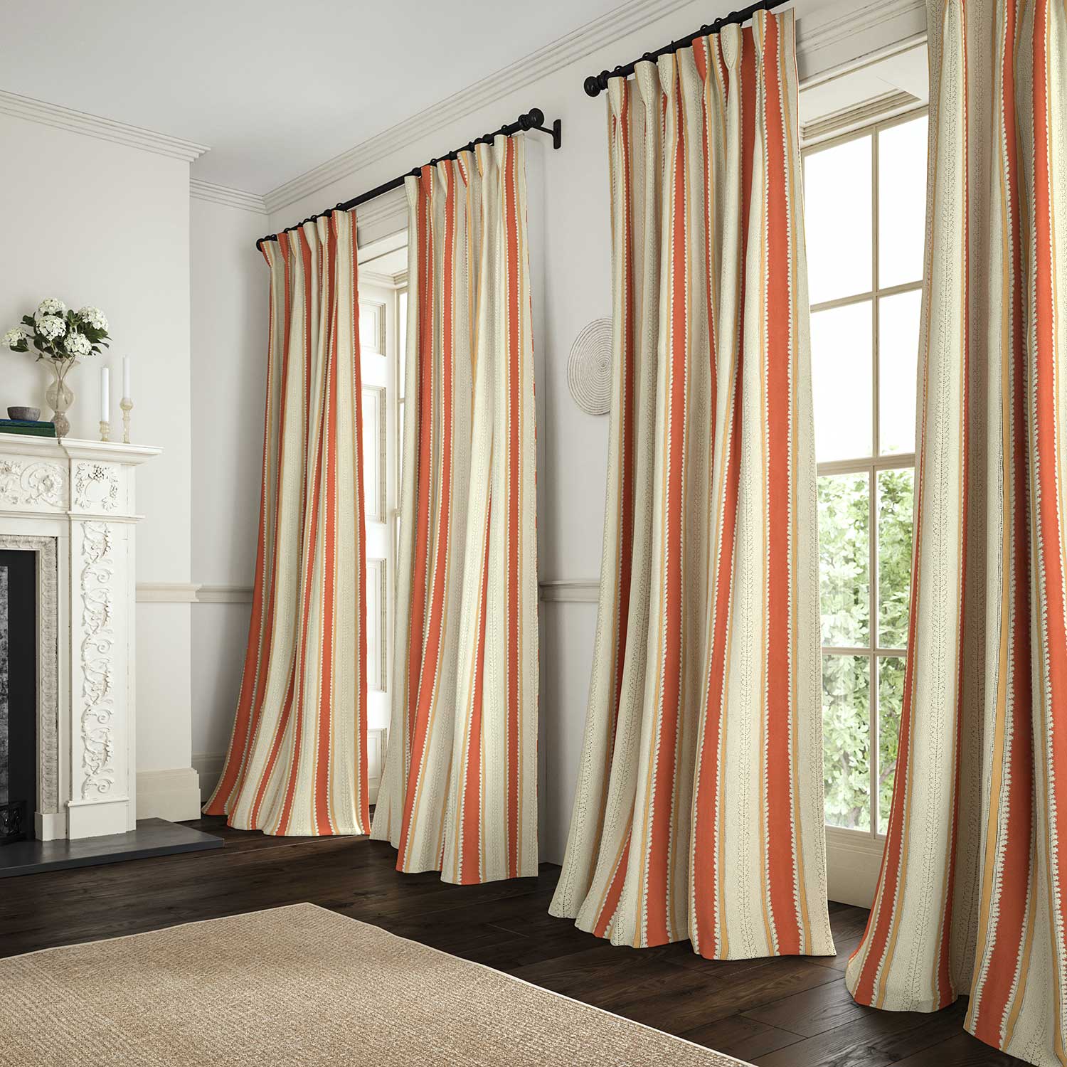 Drawing inspiration from an original French archive sample, this stripe is an artisan mix of bands of colour and delicate pattern. Printed on pure linen, there are 19 colourways available, ranging from maroon and tawny hues to the ever-popular blues and greens. The new stripe collection’s appeal lies in its versatility; whether it takes centre stage as a hero design or plays a supporting role, it is undeniably beautiful.