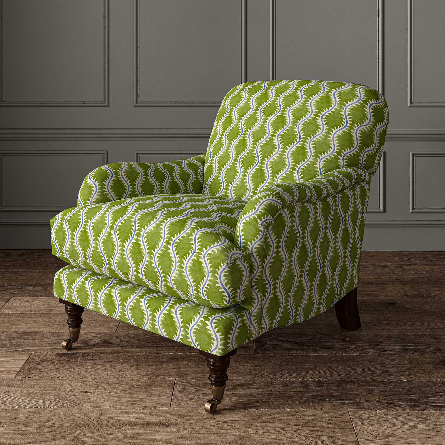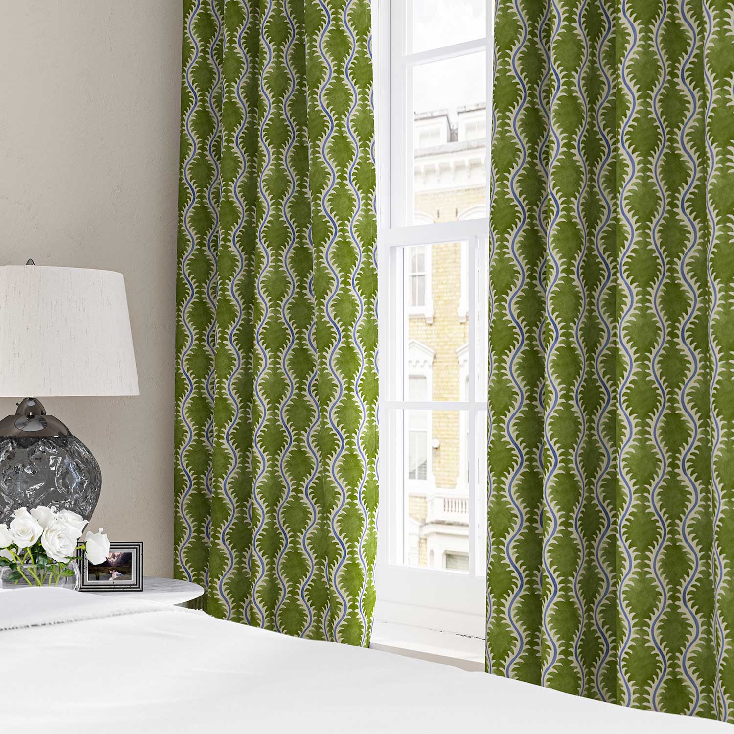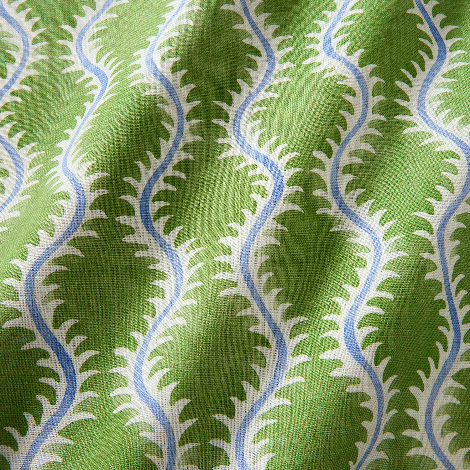 This pattern is derived from 17th-century domino paper used as book endpaper. The Linwood design team successfully blended a contemporary aesthetic into the design. Through its gentle, delicate flow, Helter Skelter celebrates the natural feel of the stylized fern. This fabric, which is printed on linen, is suitable for upholstery and window treatments.
