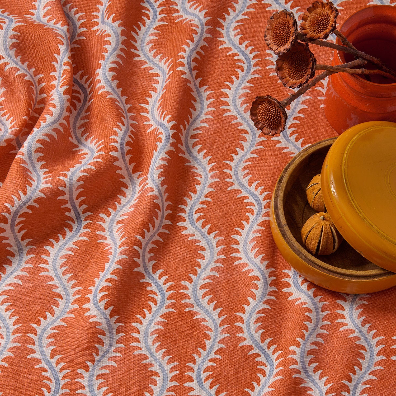 This pattern is derived from 17th-century domino paper used as book endpaper. The Linwood design team successfully blended a contemporary aesthetic into the design. Through its gentle, delicate flow, Helter Skelter celebrates the natural feel of the stylized fern. This fabric, which is printed on linen, is suitable for upholstery and window treatments.