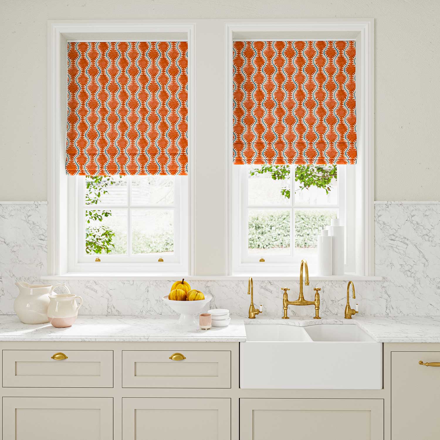 The fabric design is shown flat on the above image. Patterned fabric will look different when made into curtains as it will hang in rippled folds.