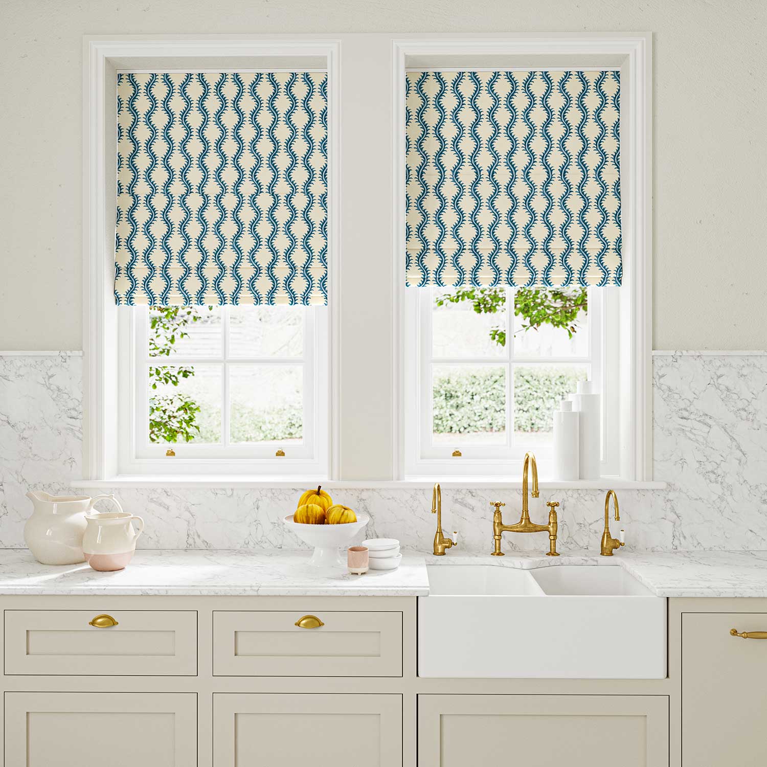 The fabric design is shown flat on the above image. Patterned fabric will look different when made into curtains as it will hang in rippled folds.