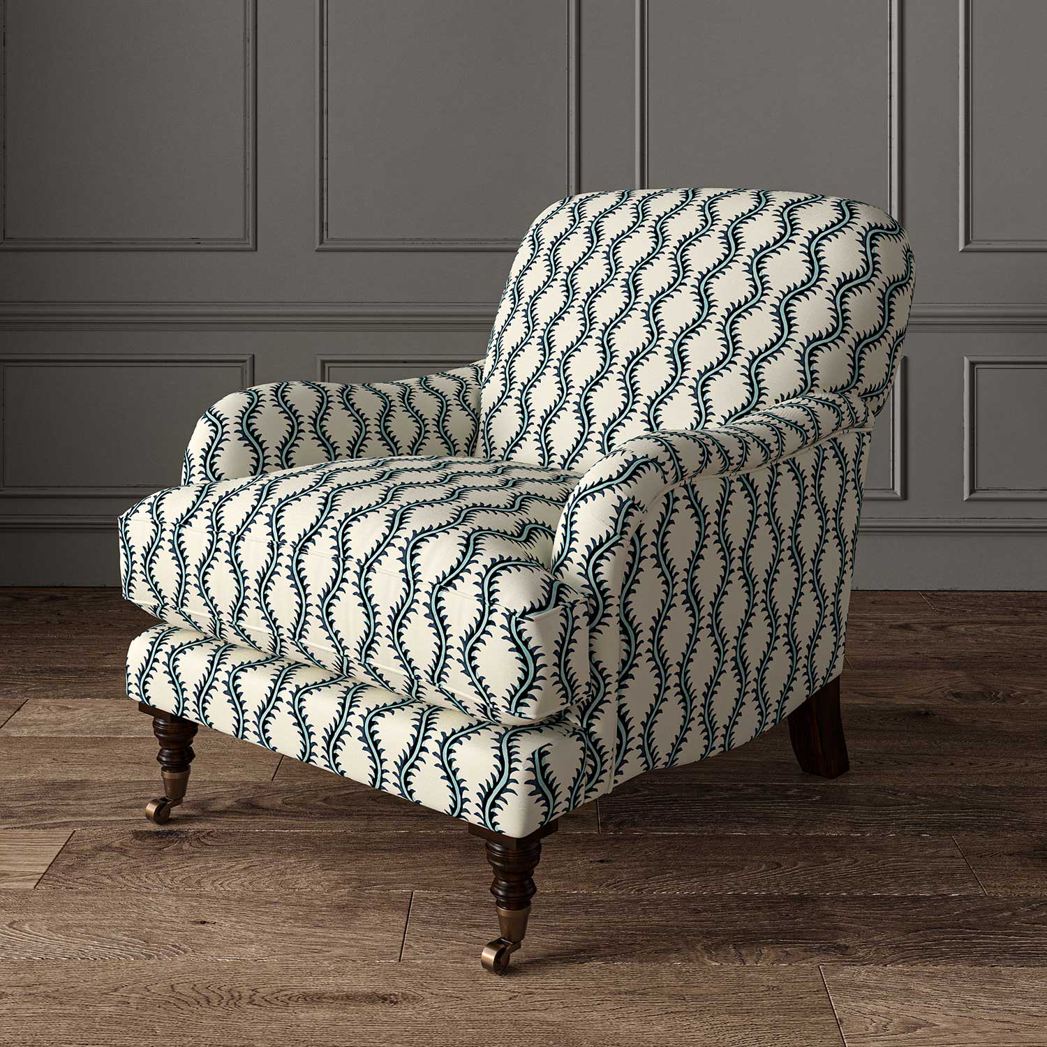 This pattern is derived from 17th-century domino paper used as book endpaper. The Linwood design team successfully blended a contemporary aesthetic into the design. Through its gentle, delicate flow, Helter Skelter celebrates the natural feel of the stylized fern. This fabric, which is printed on linen, is suitable for upholstery and window treatments.