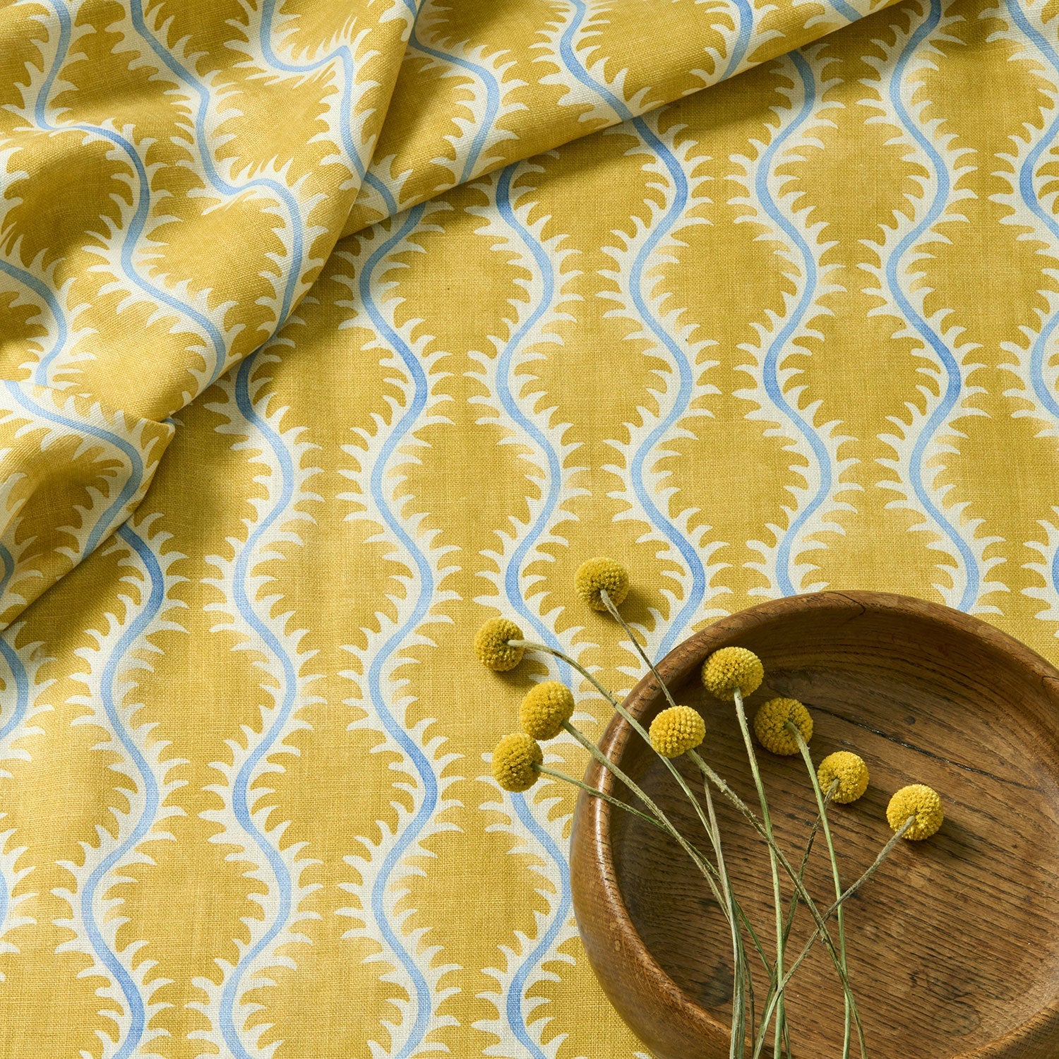 This collection of small-scale designs builds on the success of our recent launches, Small Prints and  Bibi.  Five free-flowing geometric patterns featuring fun squiggles and undulating lines create a delightful impression. The designs are printed on a linen fabric that has a relaxed feel. In addition to sofas, chairs, and ottomans, Small Prints II is ideally suited for blinds and curtains. Every project may draw successfully from the chosen palette, which ranges from vivid hues to subtle pastels.