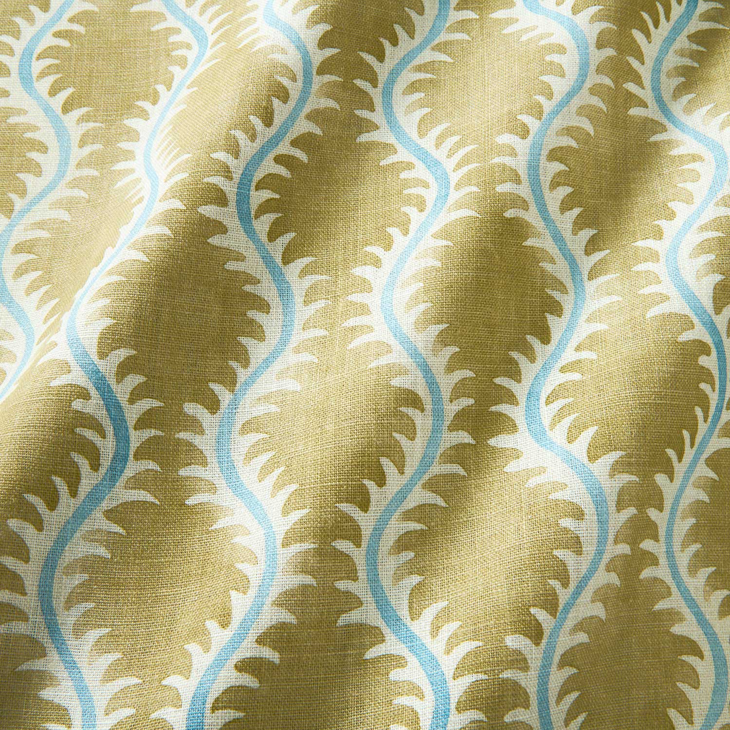 This pattern is derived from 17th-century domino paper used as book endpaper. The Linwood design team successfully blended a contemporary aesthetic into the design. Through its gentle, delicate flow, Helter Skelter celebrates the natural feel of the stylized fern. This fabric, which is printed on linen, is suitable for upholstery and window treatments.