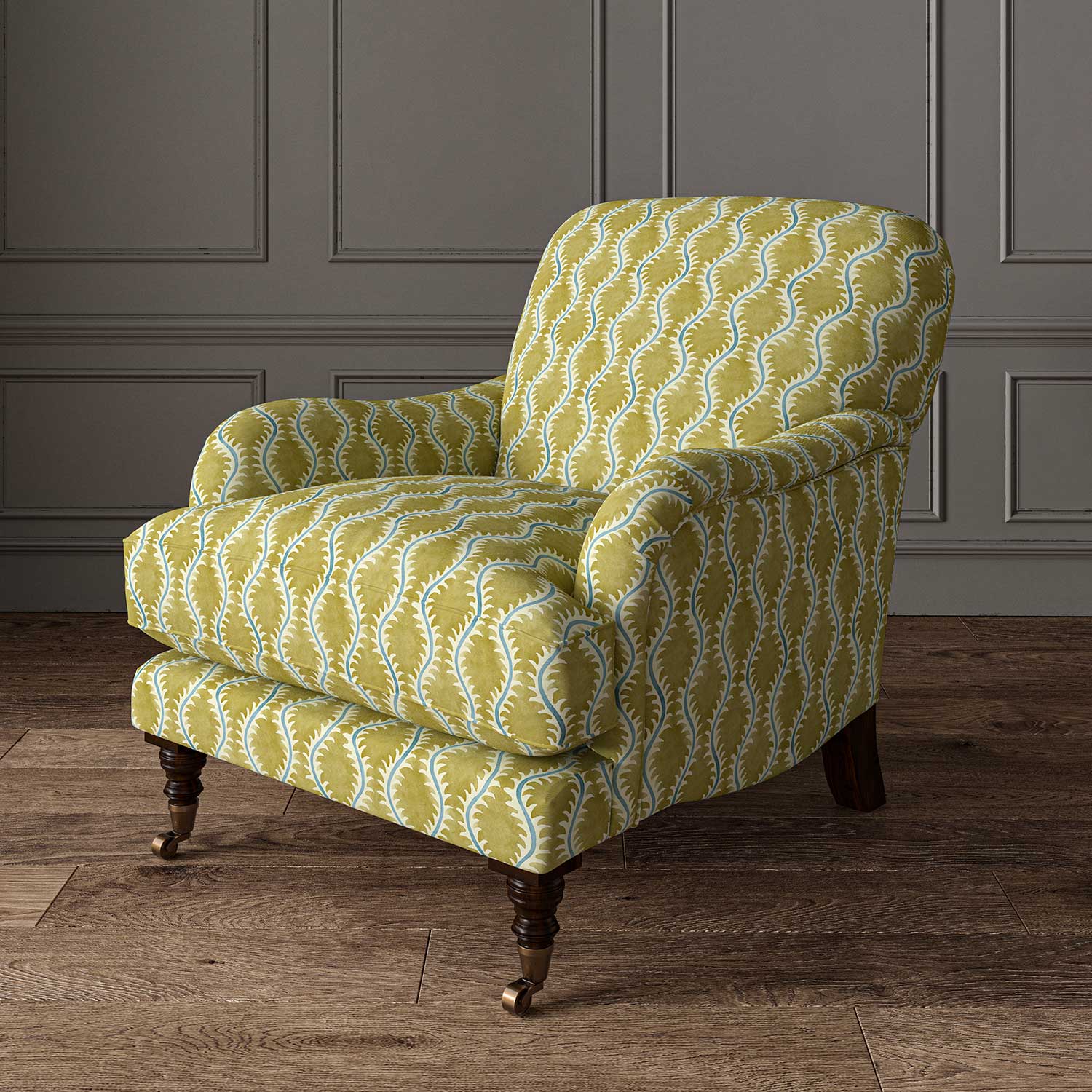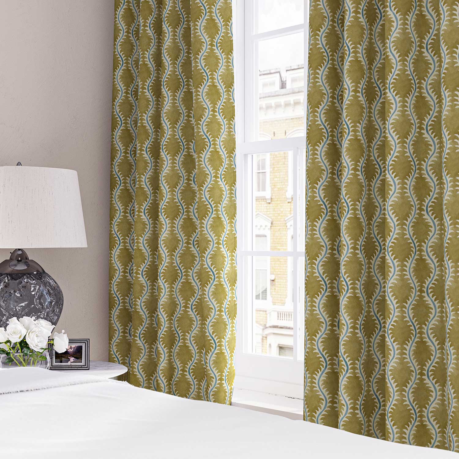 The fabric design is shown flat on the above image. Patterned fabric will look different when made into curtains as it will hang in rippled folds.