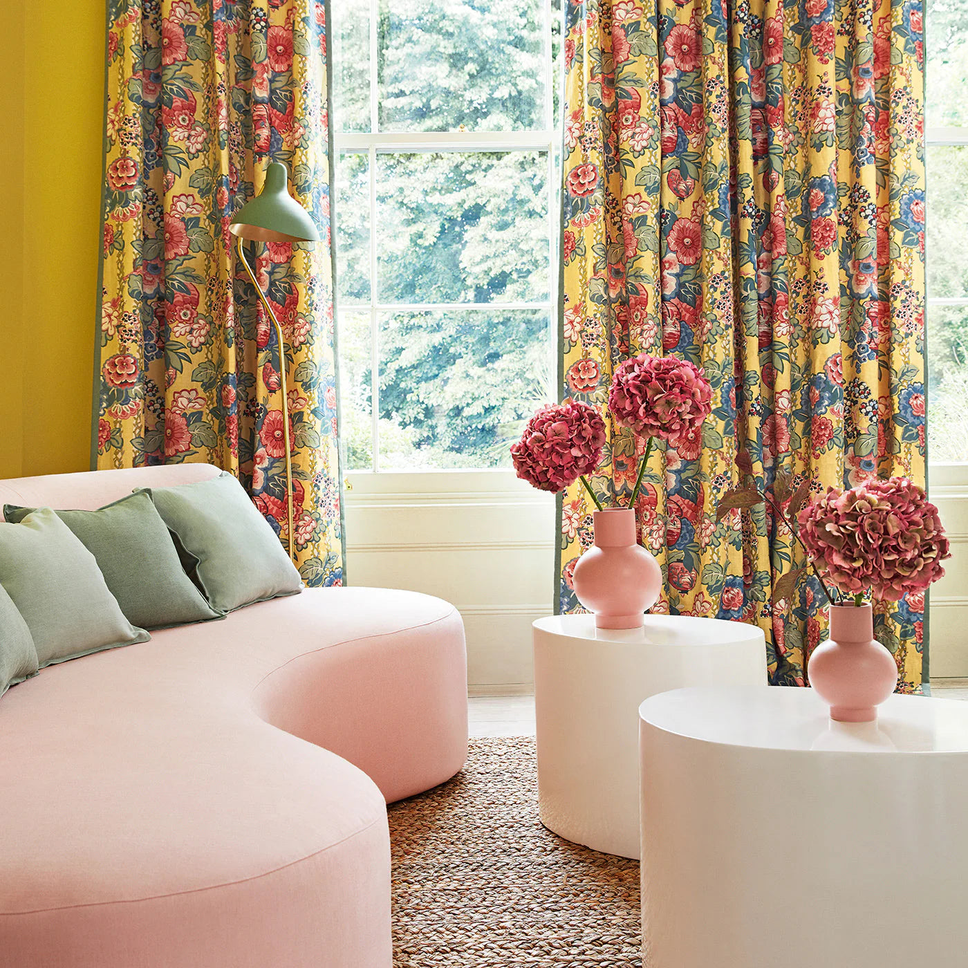 The fabric design is shown flat on the above image. Patterned fabric will look different when made into curtains as it will hang in rippled folds.
