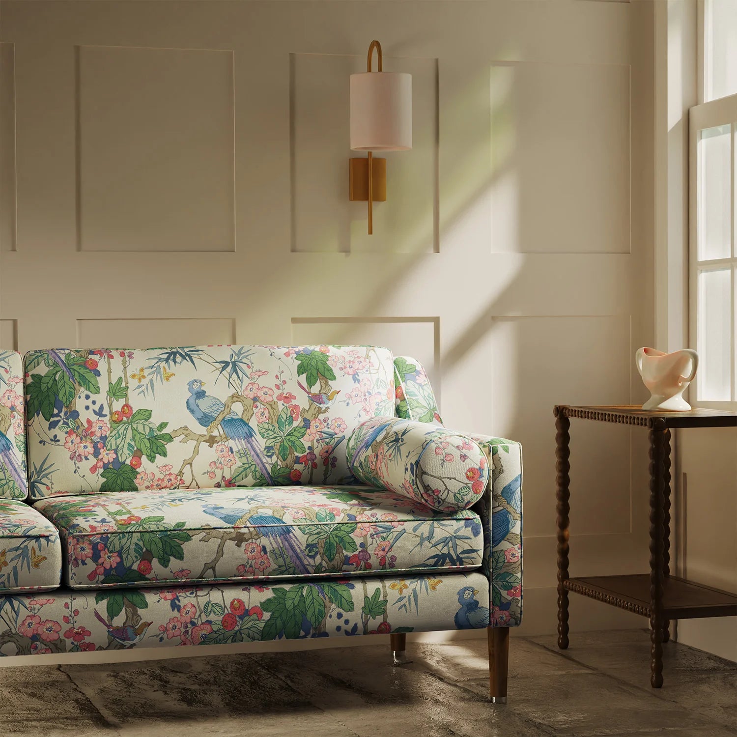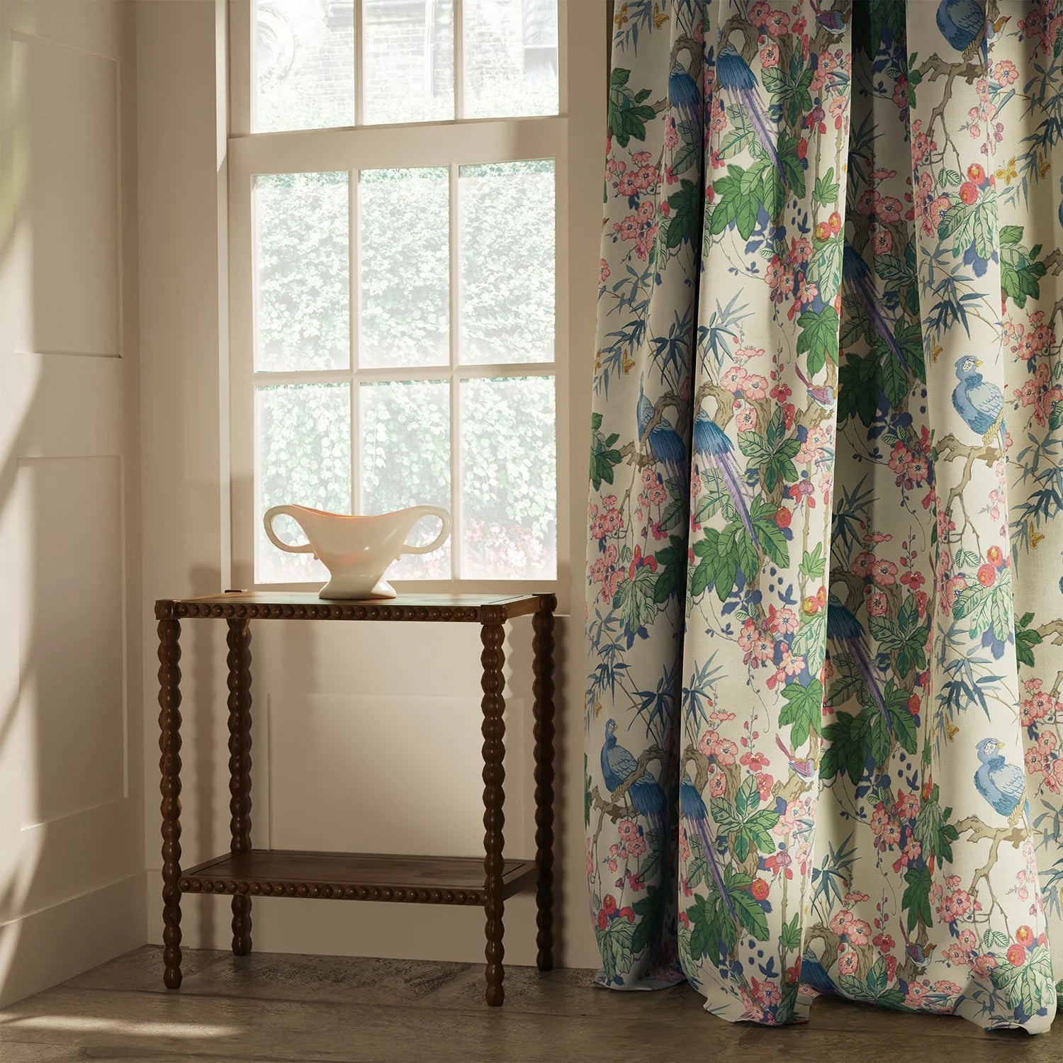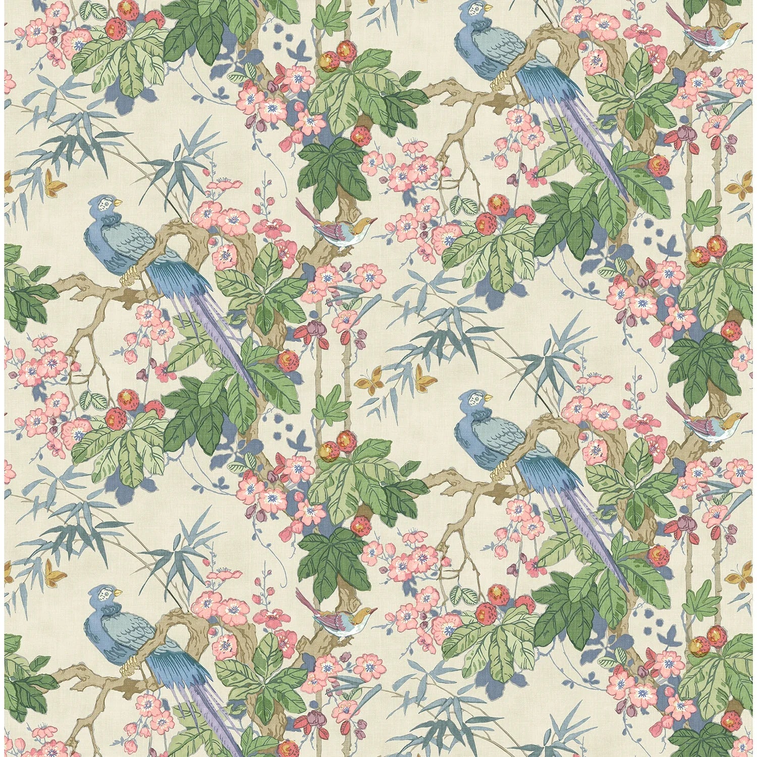 With its birds perched amongst fragrant blossom and bamboo, this floral design would be a glorious addition to any home. Printed on a casual linen fabric that is ideal for any interior design project.