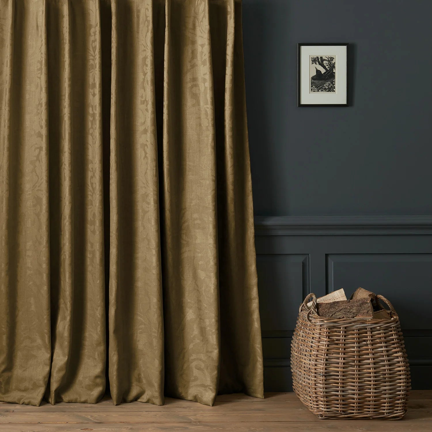 The fabric design is shown flat on the above image. Patterned fabric will look different when made into curtains as it will hang in rippled folds.