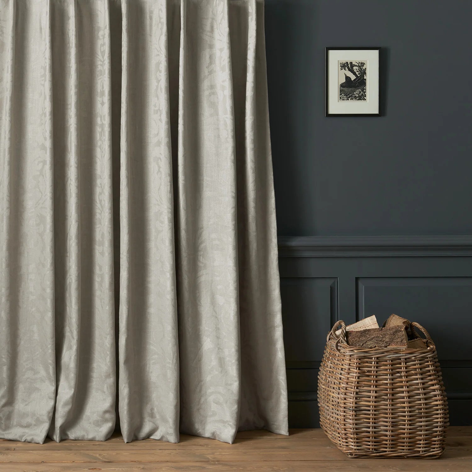 The fabric design is shown flat on the above image. Patterned fabric will look different when made into curtains as it will hang in rippled folds.