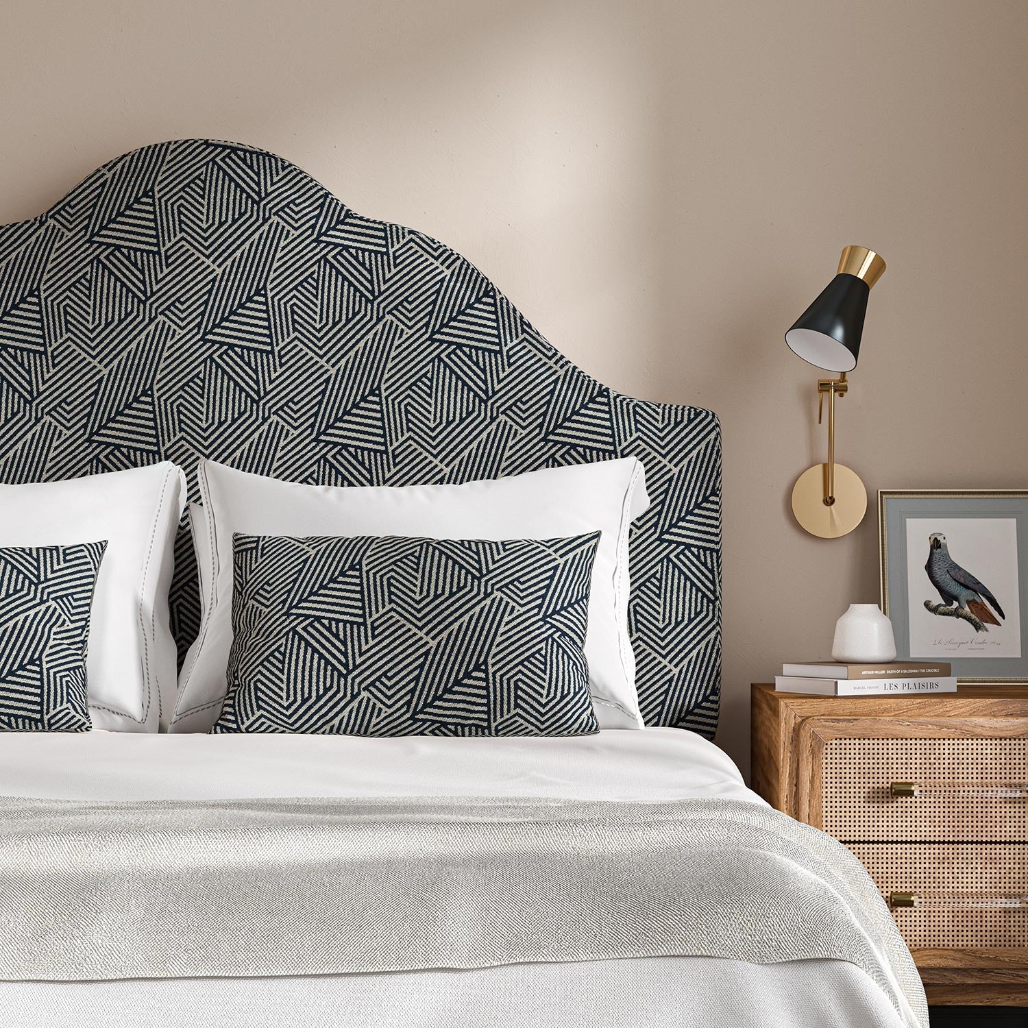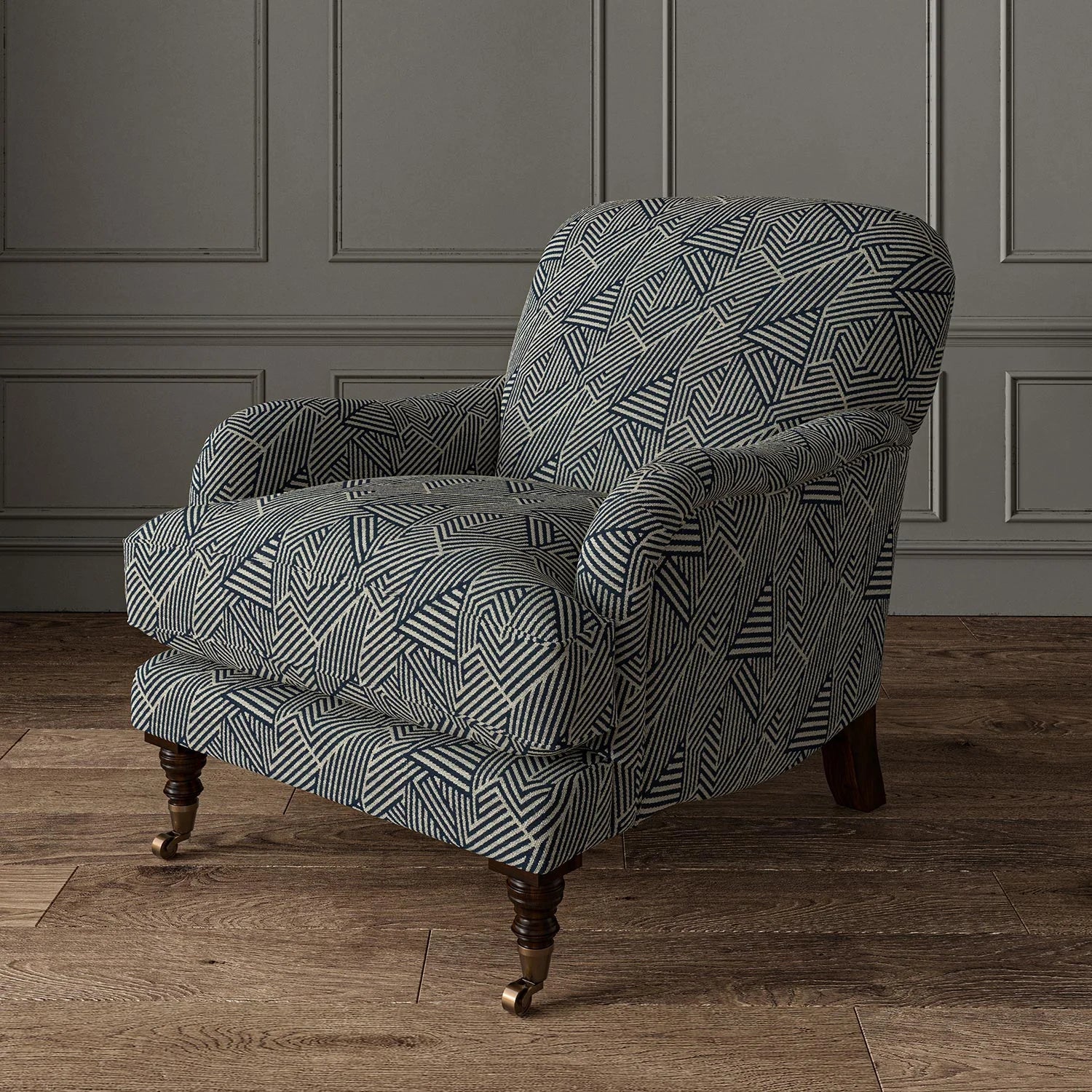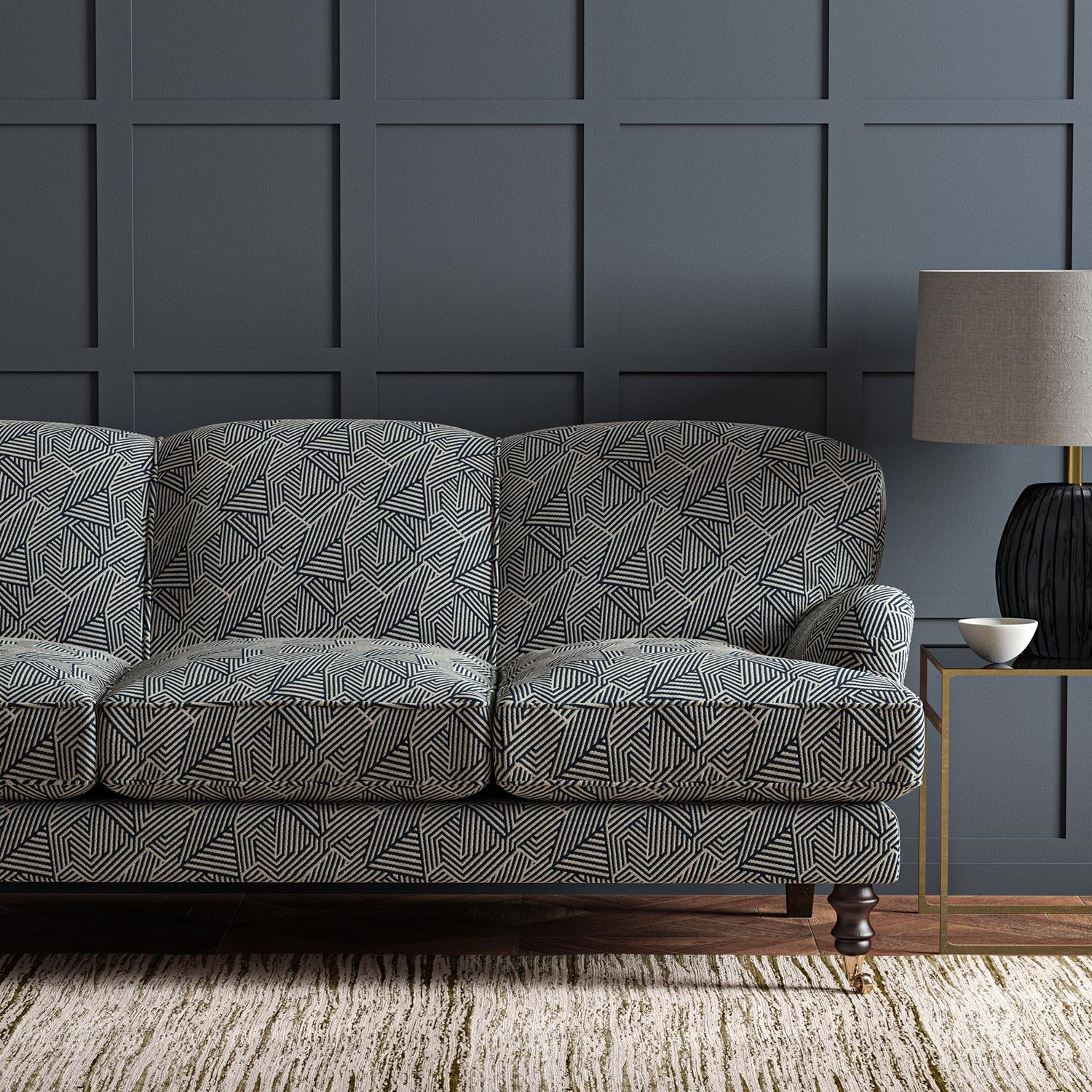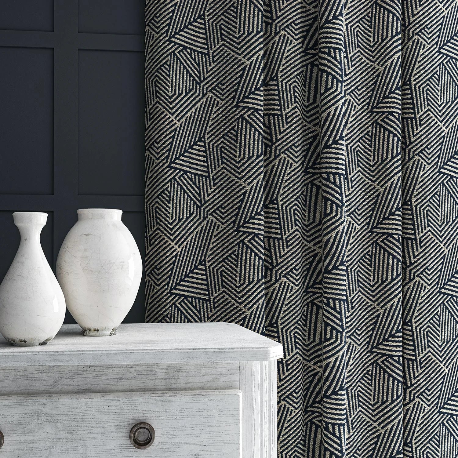 A durable woven fabric with a sophisticated abstract geometric pattern that complements any style of furniture. Sashay is also a good choice for curtains or blinds.