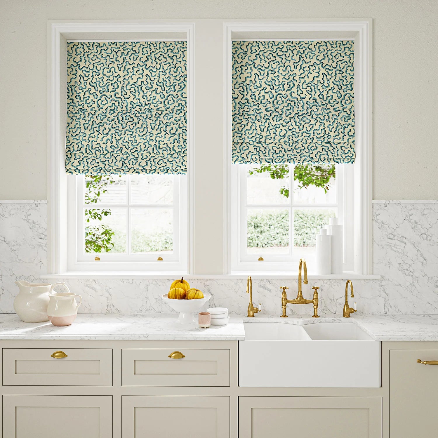 The fabric design is shown flat on the above image. Patterned fabric will look different when made into curtains as it will hang in rippled folds.