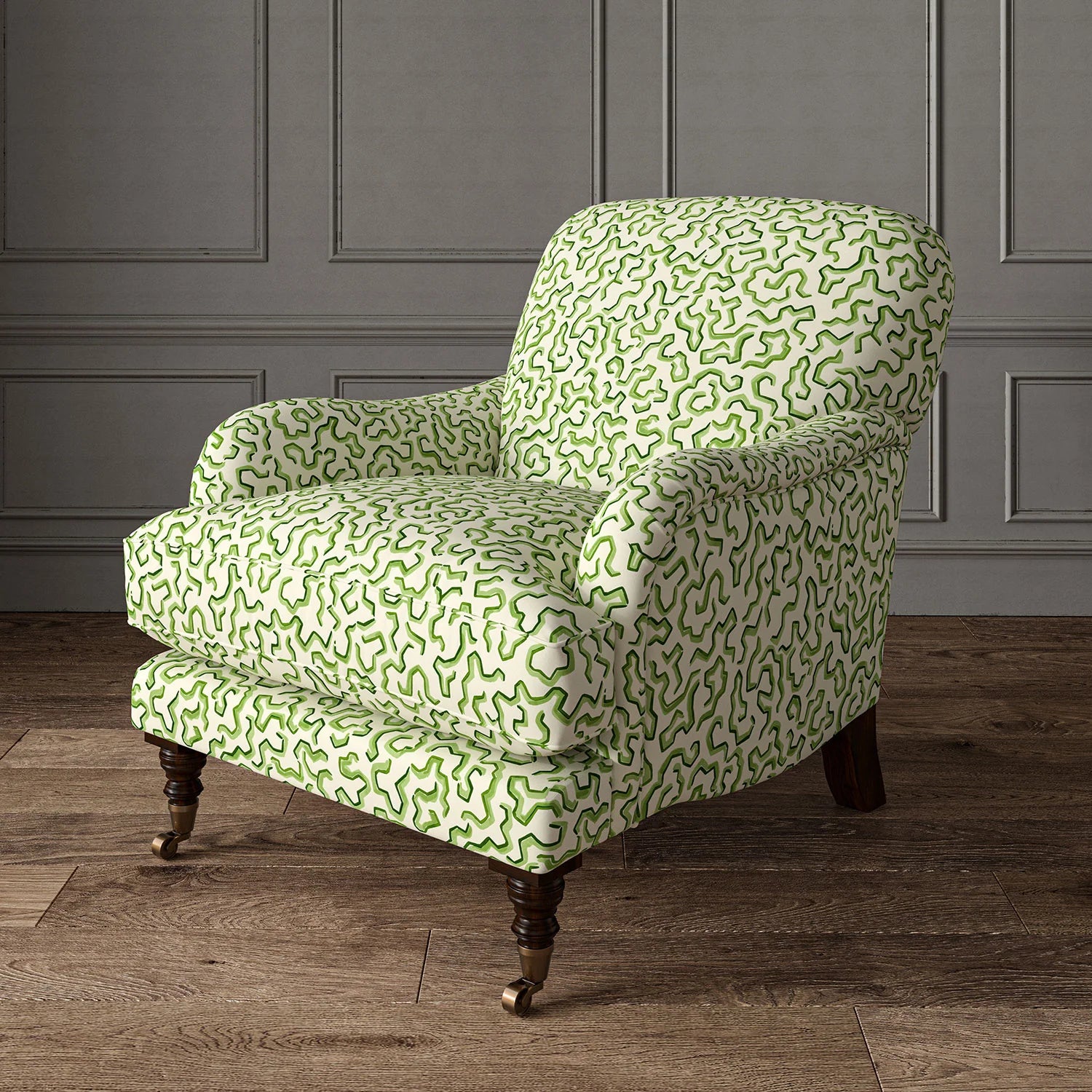 Scrunched, which twists in every direction, conveys the look of a classic animal pattern, yet unique design elements like dark and light shading offer depth of movement. This design, printed on pure linen fabric, is excellent for upholstery as well as curtains.