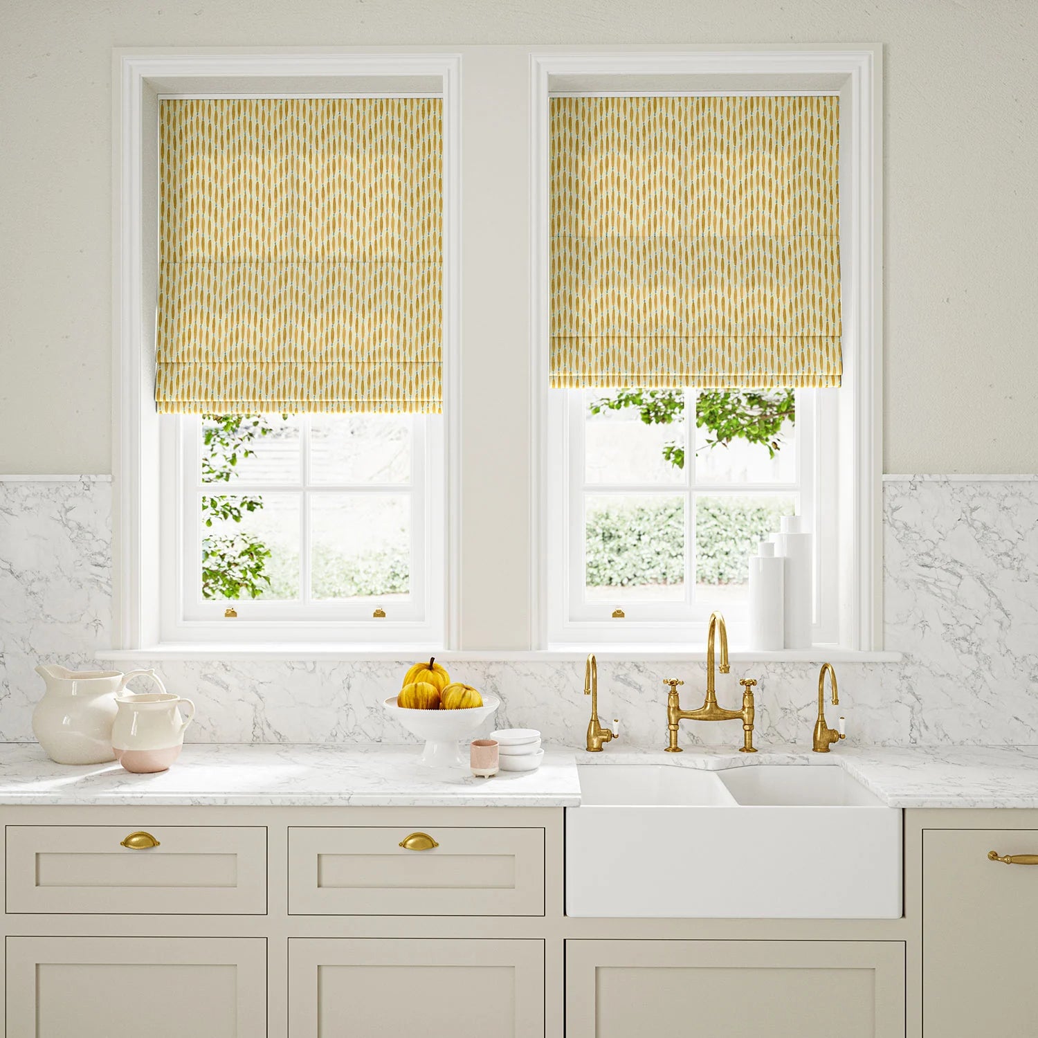 The fabric design is shown flat on the above image. Patterned fabric will look different when made into curtains as it will hang in rippled folds.