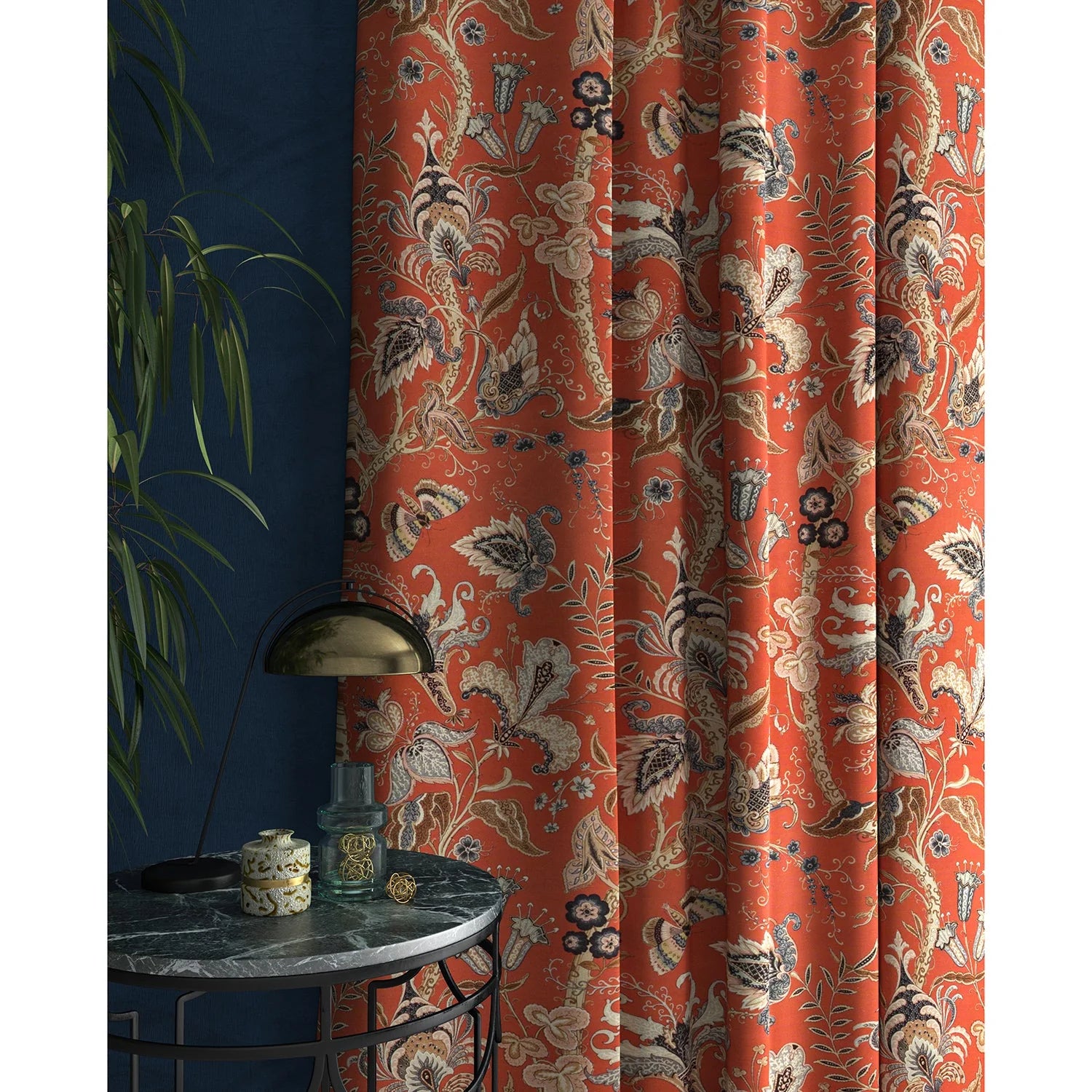 The fabric design is shown flat on the above image. Patterned fabric will look different when made into curtains as it will hang in rippled folds.