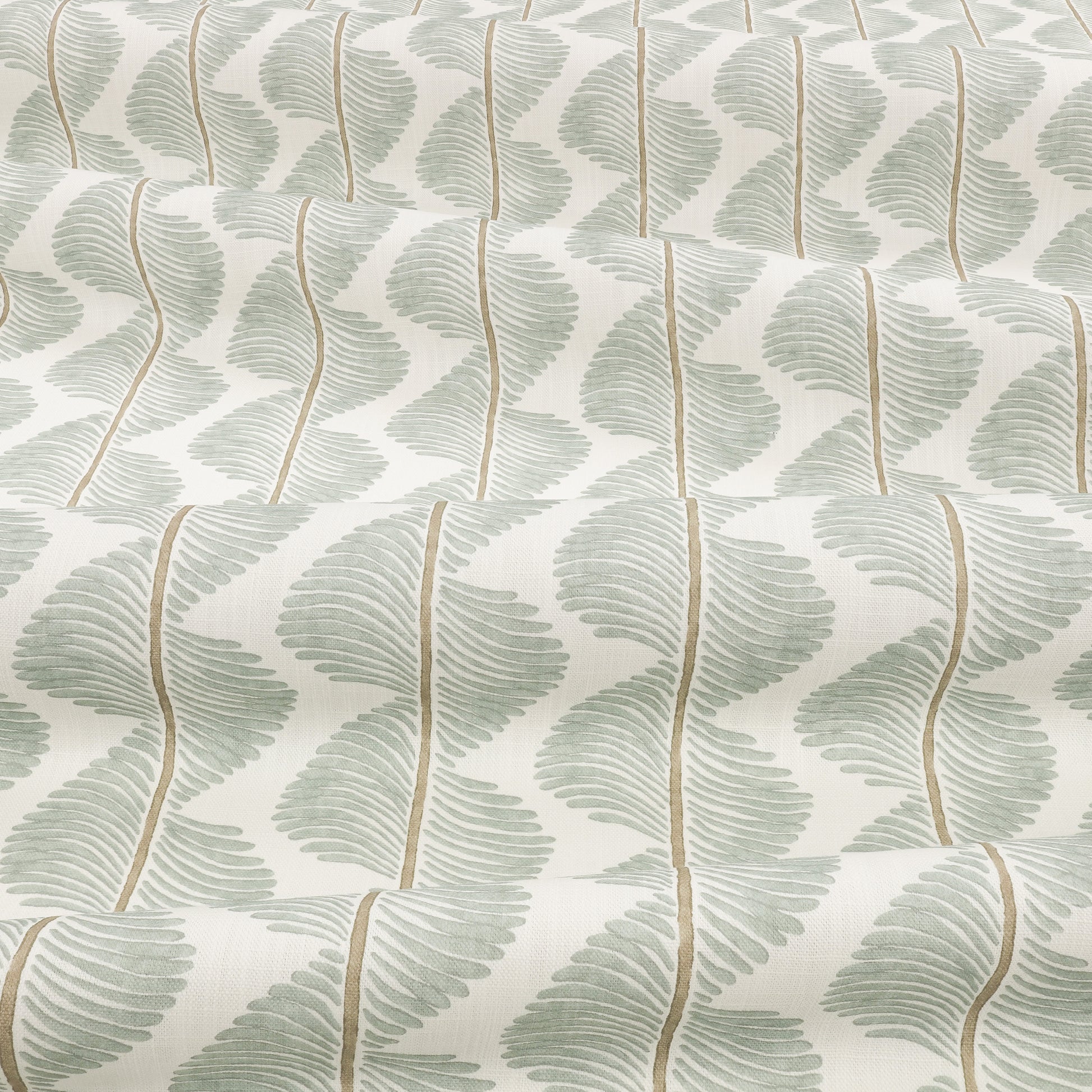 A mesmerising wave of pattern with a vibrant flash of colour swirls down the cloth to form a striking stripe design. Printed on an organic and recycled cotton linen blend, details of the original hand-blocked artwork can be seen in the print. Subtle variations in shade and distinct markings create a truly unique design that celebrates the rich history of pattern making.