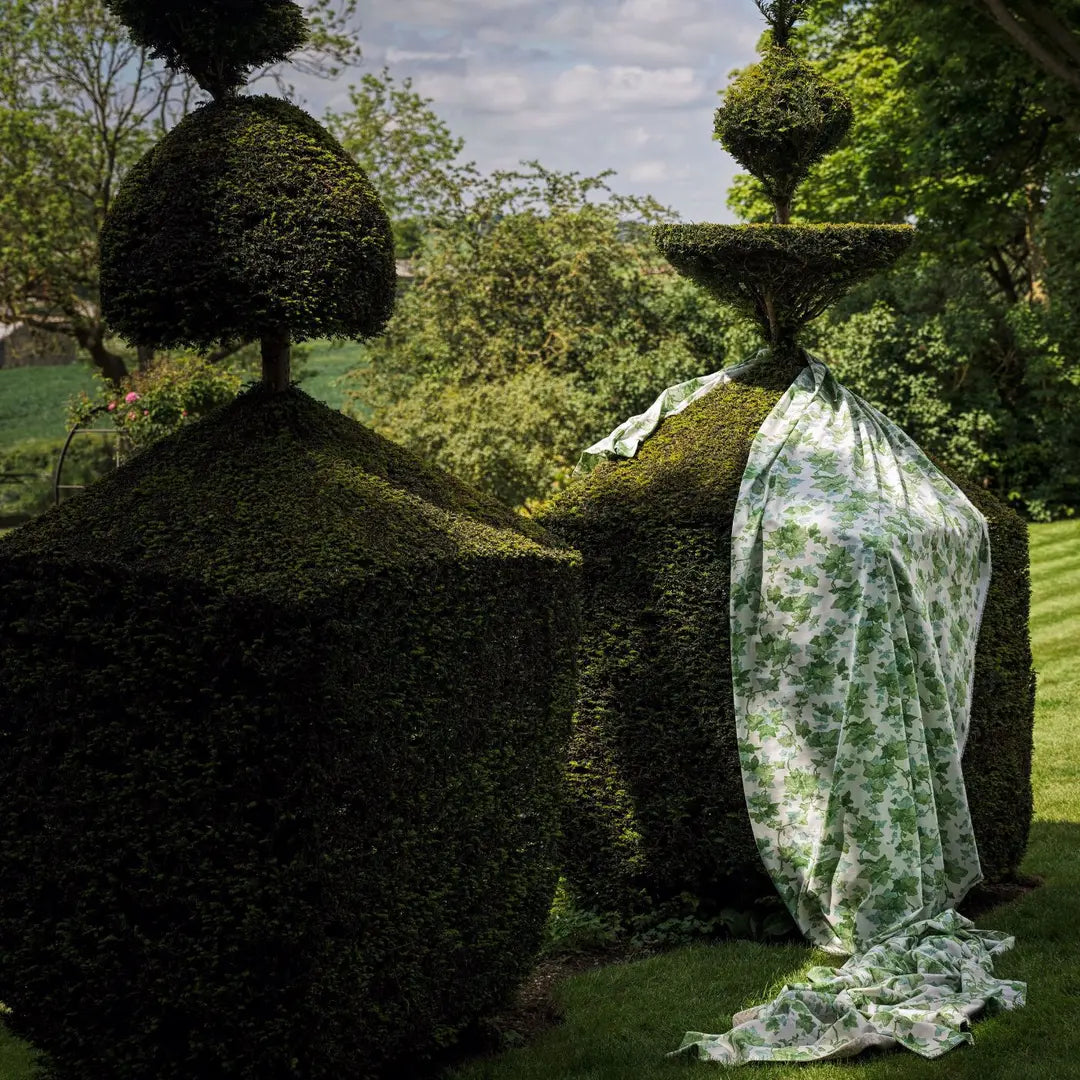 A trail of twisting ivy climbs upwards to create this all-over fabric design. Made popular in Victorian times, twisting ivy provides a sense of bringing the outside in.