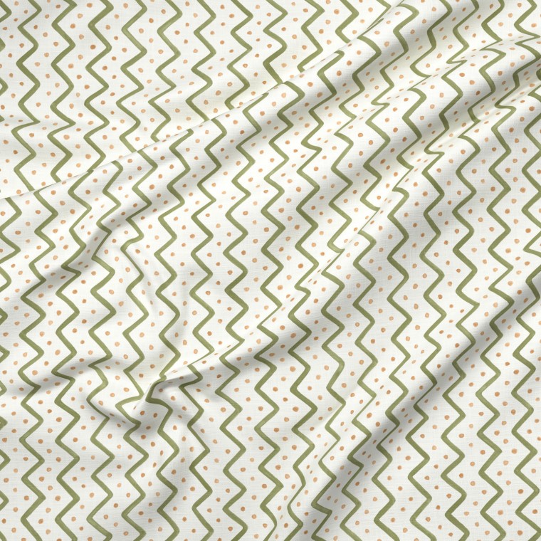 Adapted in our studio from a section of a historical French chintz, this fun print features a repeating, deep red zig zag and taupe dots. Whimsical and easy-to-use, this small-scale fabric is produced on a seriously soft 100% organic cotton and available in nine other versatile colourways.