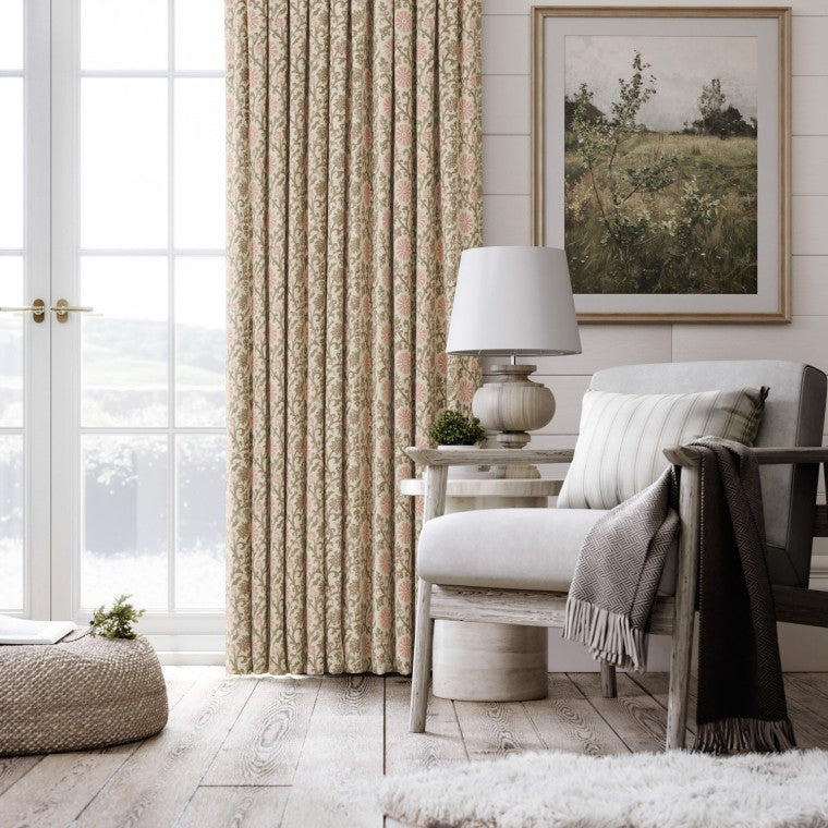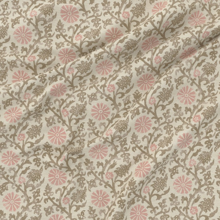 Inspired by an ancient floral and leaf scroll from an exhibit at The Ashmolean Museum, Oxford, this design has been reimagined in a charming hand block print style. Its timeless pattern is easy to use and works beautifully across a variety of interiors. Available in seven versatile colourways, it comes as both fabric and wallpaper, allowing for a cohesive and coordinated look throughout your space.