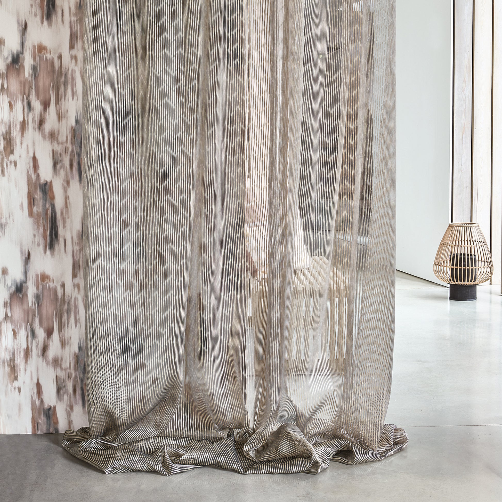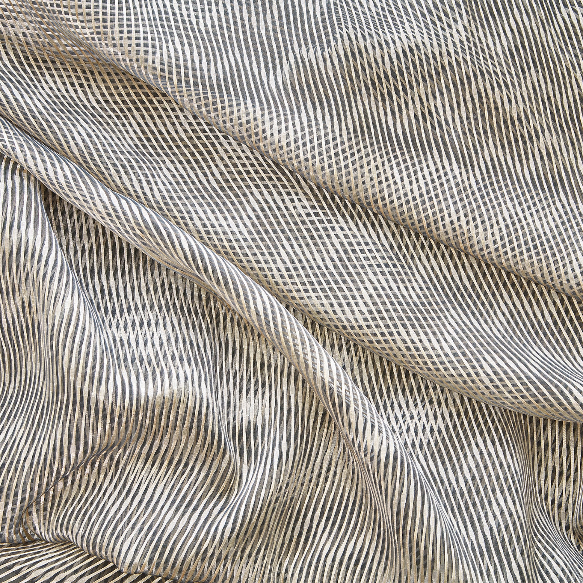 An interplay of texture and pattern defines the Vasari collection. Modern geometrics and textural designs are punctuated with a hint of intense colour and metallic shimmer. The introduction of contemporary embroidery and captivating weave techniques add elements of opacity and luxurious detailing to this dramatic collection of Trevira CS sheers.