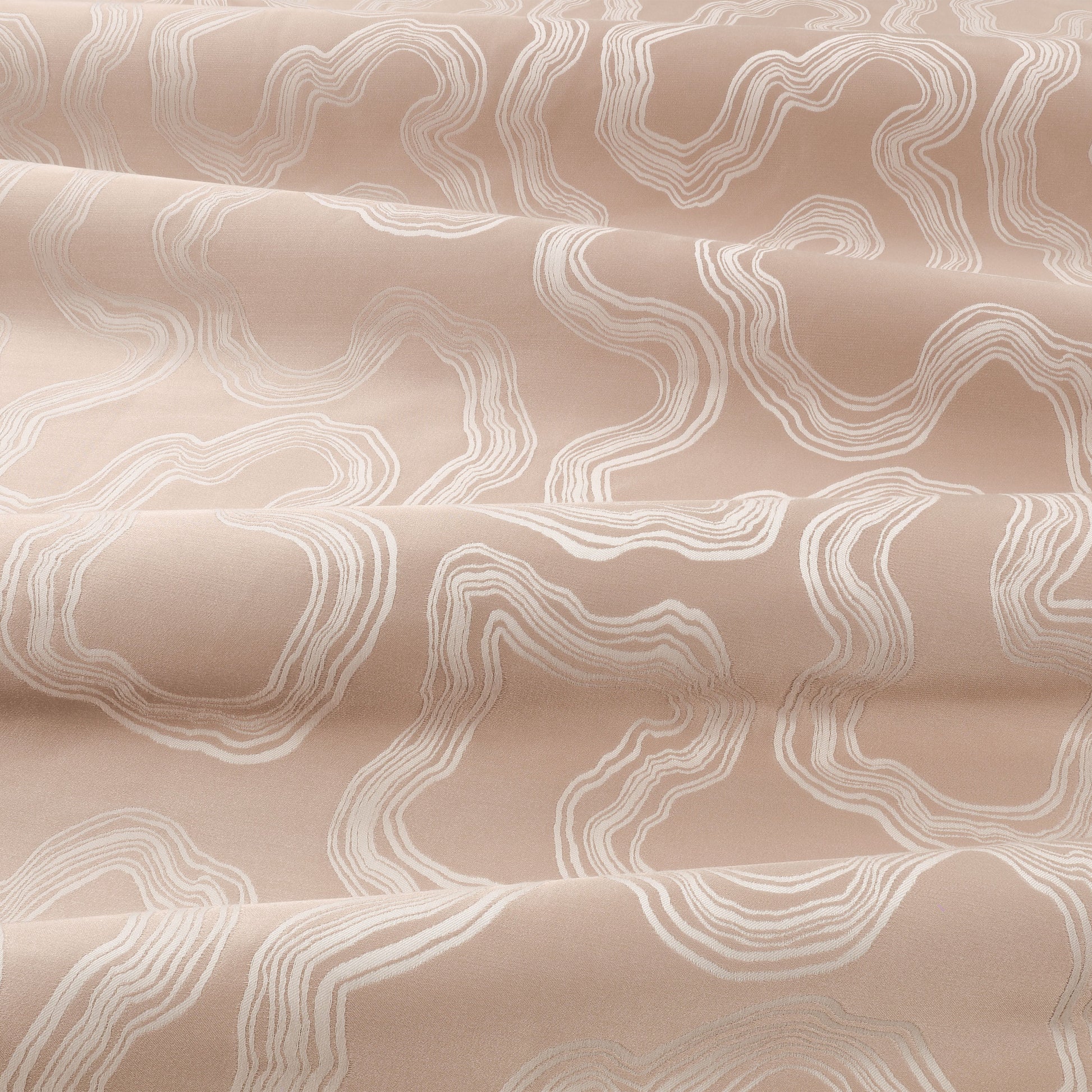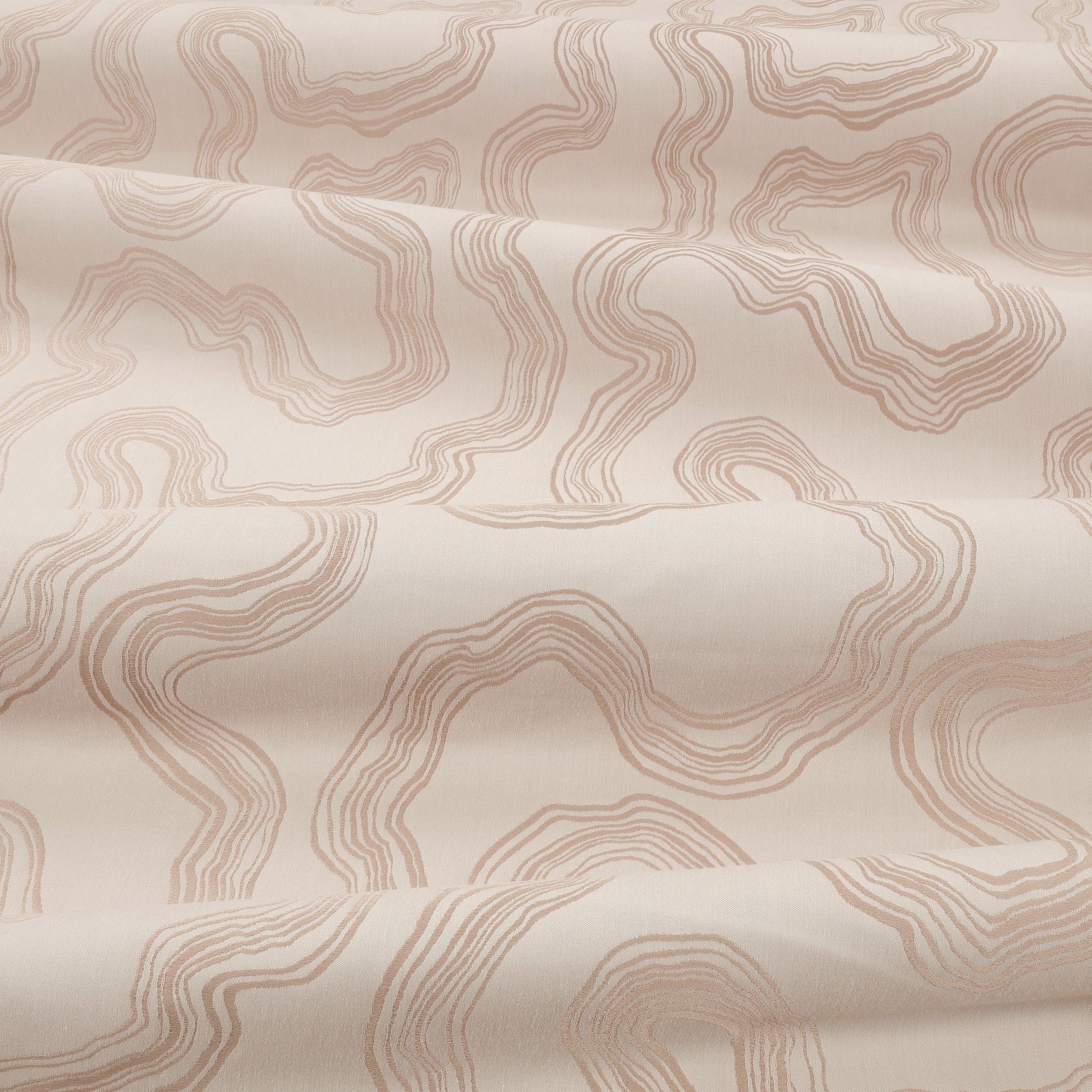 Replicating the organic curves and contour lines of natural rock strata, matt and lustrous yarns combine within this reversible satin jacquard weave to produce a captivating sense of movement and interest.