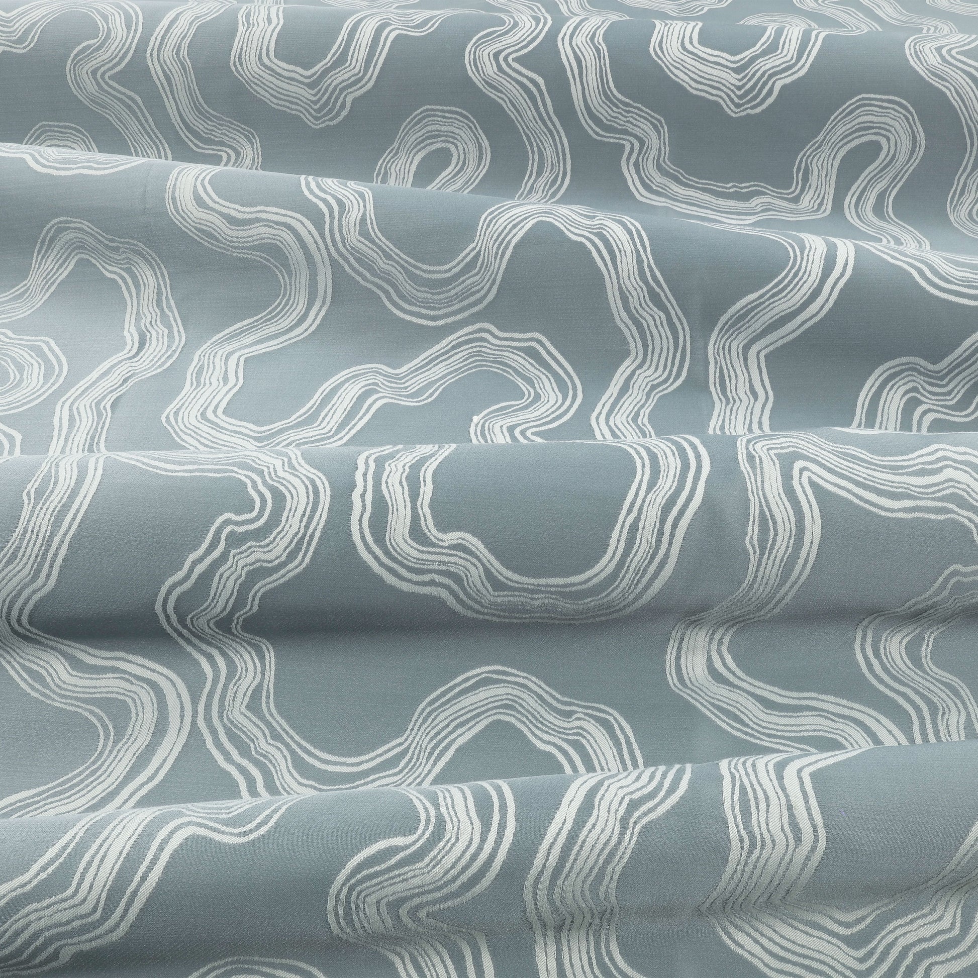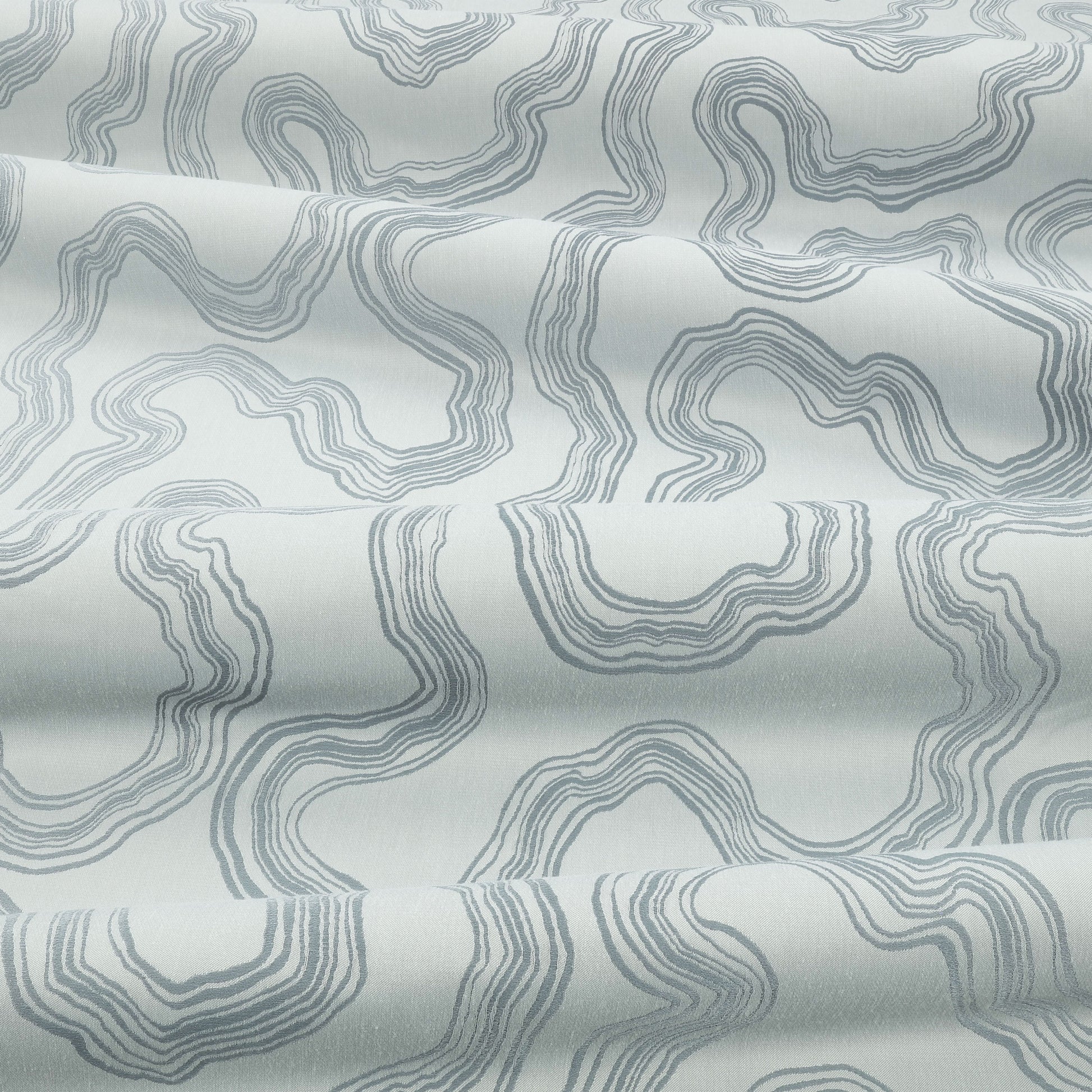 Replicating the organic curves and contour lines of natural rock strata, matt and lustrous yarns combine within this reversible satin jacquard weave to produce a captivating sense of movement and interest.