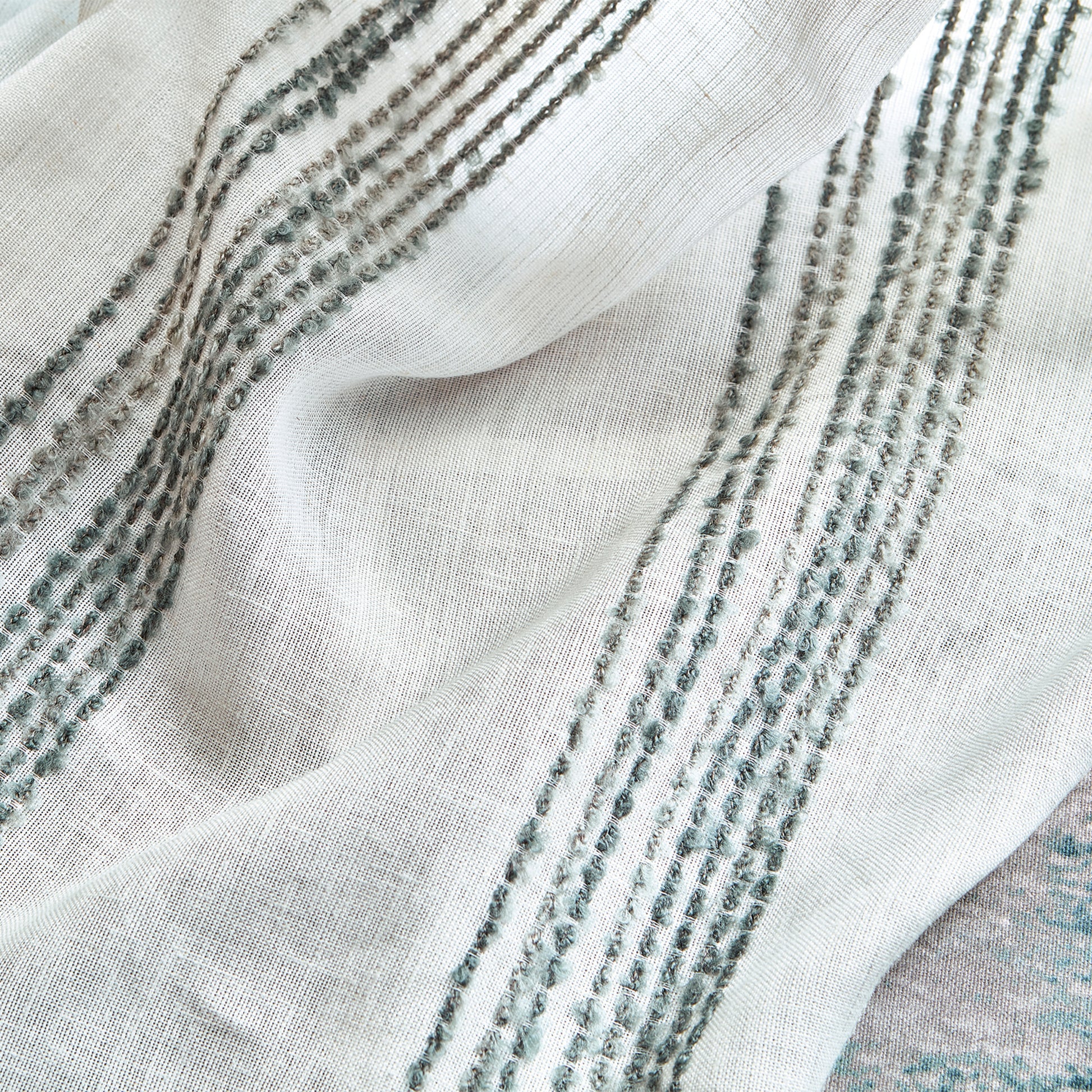 A wide-width sheer that features stripes of spaced dyed, bouclé yarns that have a subtle change in colour. The textural boucle yarns add an informality to the structure of the stripe.