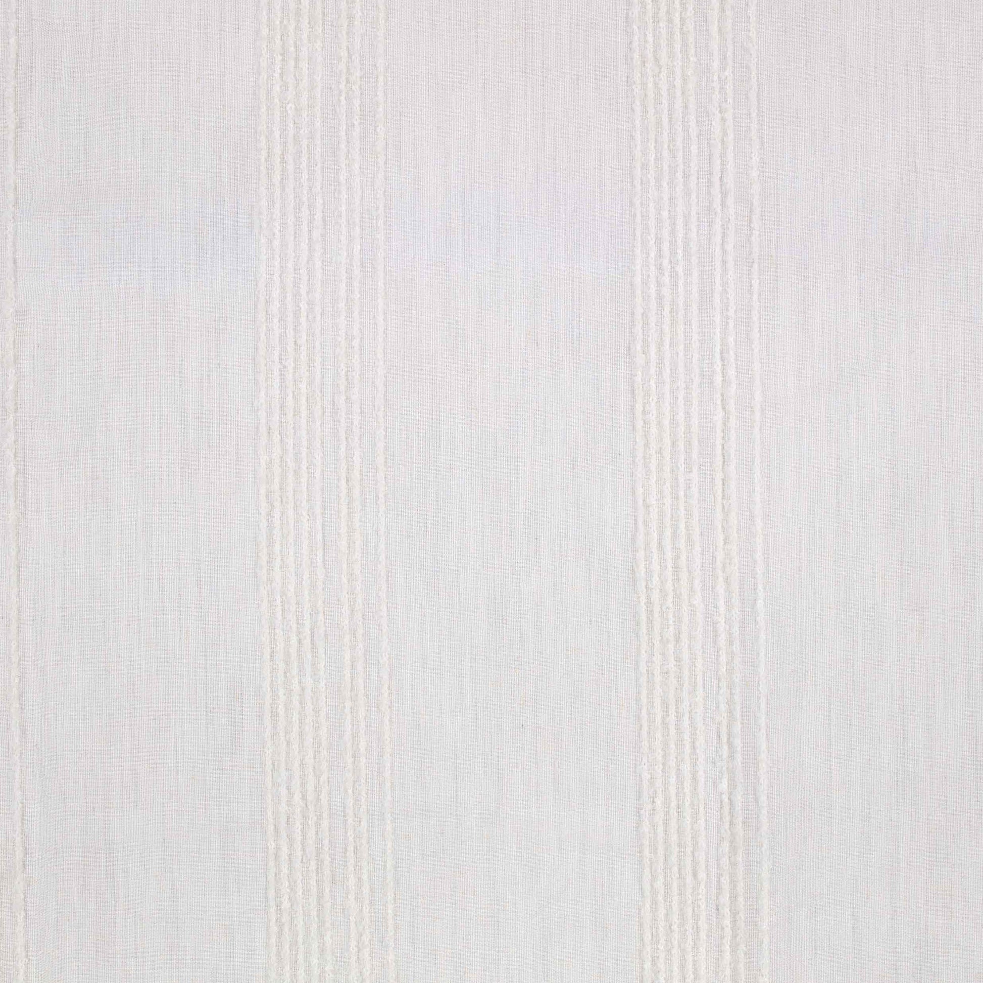 A wide-width sheer that features stripes of spaced dyed, bouclé yarns that have a subtle change in colour. The textural boucle yarns add an informality to the structure of the stripe.