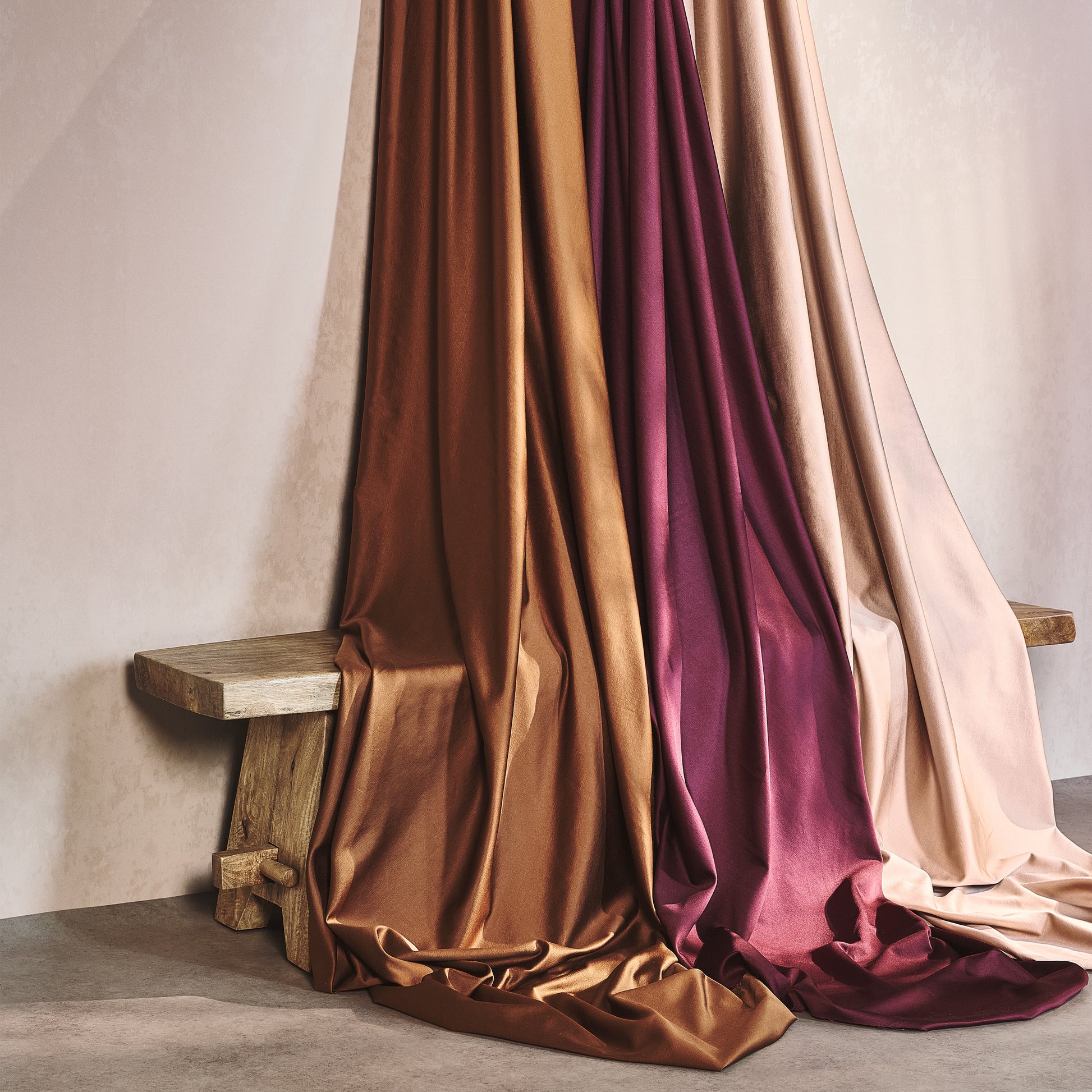 A sleek, wide-width cotton satin which embodies a delicate lustre and impressive drape, Sorrento introduces sophisticated appeal to interiors. Featuring a smooth appearance on the face and a subtly textured, matt finish on the reverse, this reversible fabric is a versatile option for luxurious drapery.