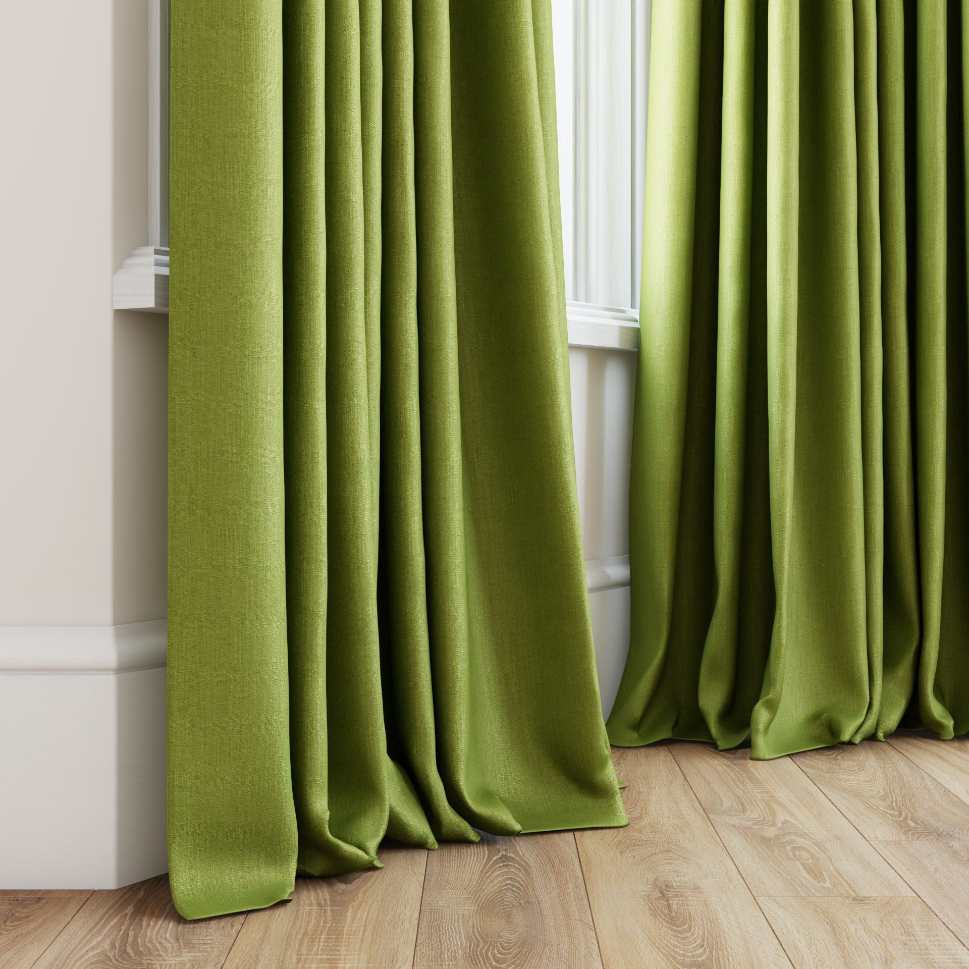 The fabric design is shown flat on the above image. Patterned fabric will look different when made into curtains as it will hang in rippled folds.