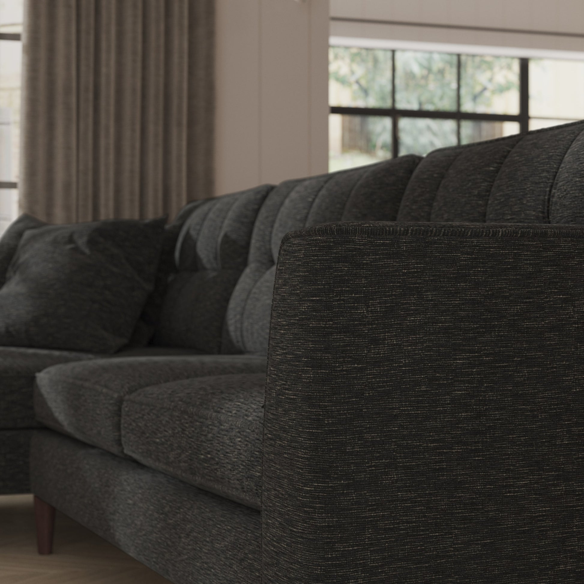 Interlining can be added to any hand finished curtains, whichever lining you select. The extra fleece layer is added between the fabric and the lining, giving increased insulation and ensuring the curtains hang beautifully.