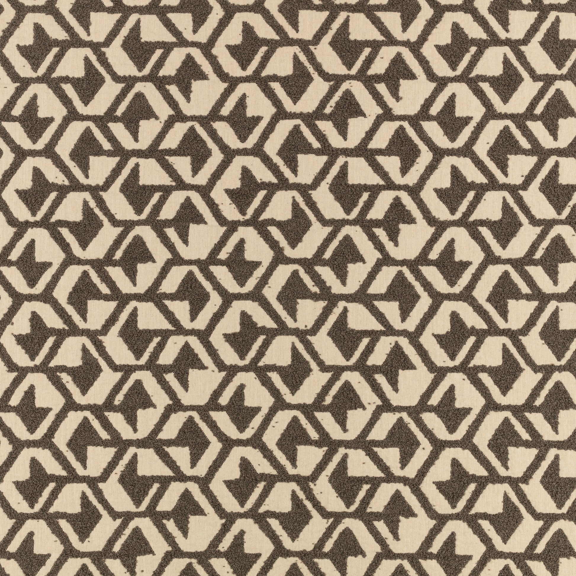A highly textured wool bouclé creates a detailed hexagon-like pattern on a linen pocket weave with a super chunky feel. These rustic qualities culminate in a relaxed, hand finished appearance with random speckles of bouclé peppering the linen ground, which only adds to the cloth’s character.