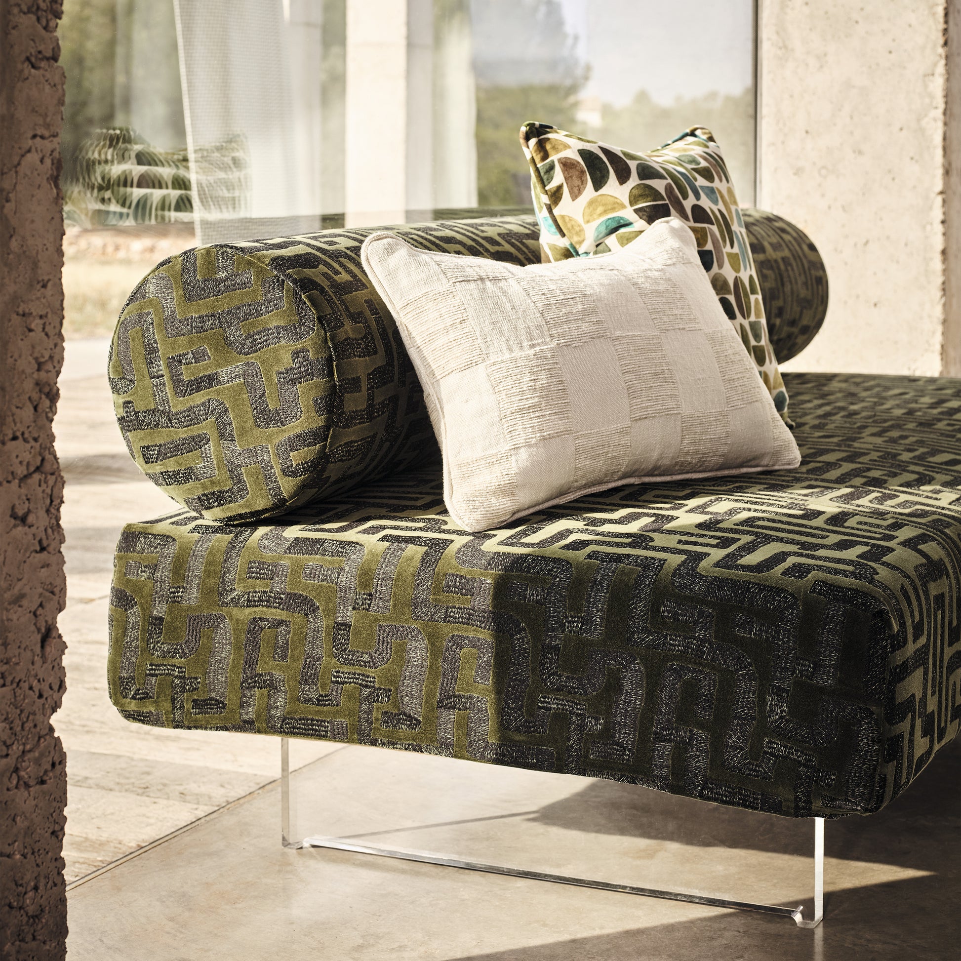 Checkmate’s riotous other half, Juego, pronounced ‘hweh-goh’ meaning ‘game’ in Spanish, is a continuation of inspired playfulness, full of gregarious designs and highly textured fabrics. Elaborate embroideries, colourful tapestries, linens, chenilles and velvets, you name it, this collection has it. Crude patterns bring a beachy vibe with their beautifully bold, organic demeanour and rugged character, presented in an earthy colour palette that Zinc is known and loved for, packed with rich shades of Tobacco, Hunting and Ochre.